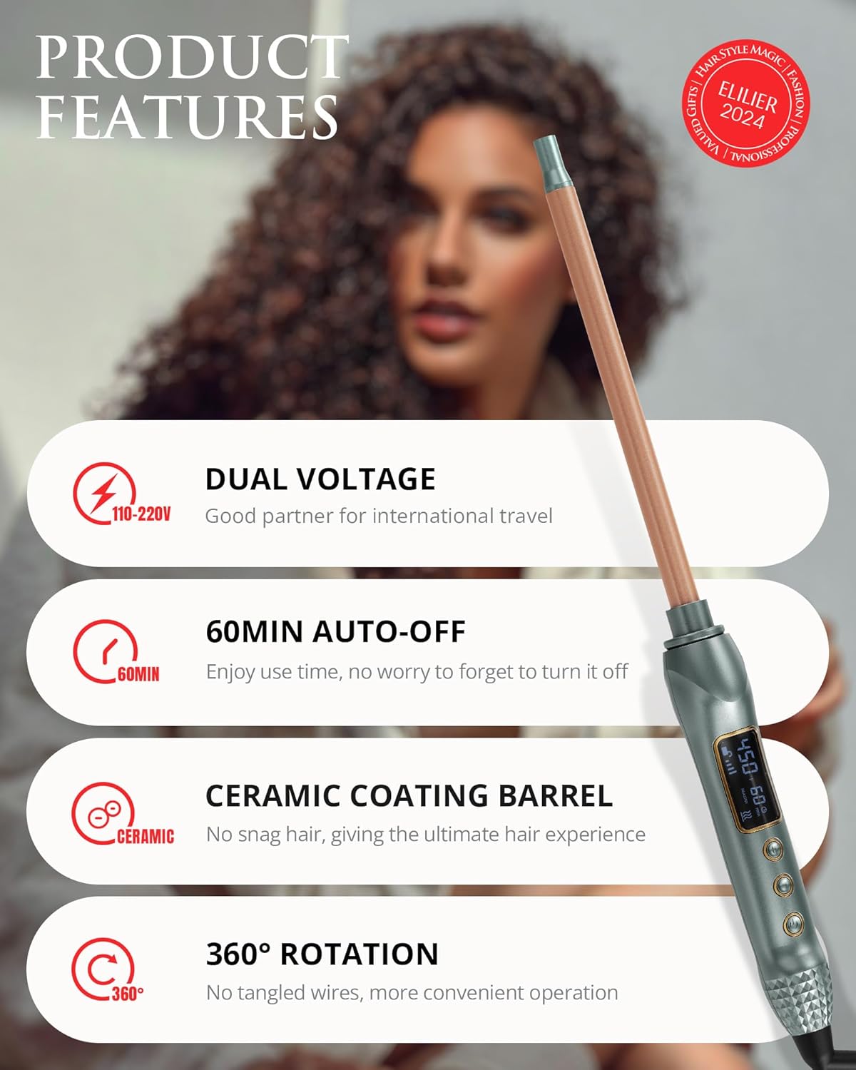 【Dual Voltage for travel】Travel light with our Dual Voltage Curling Iron. No need for plug converters; it adapts 110v-240v, ensuring you get flawless curls worldwide. Pack this must-have tool for stunning styles on any continent. Perfect your look, wherever you roam!