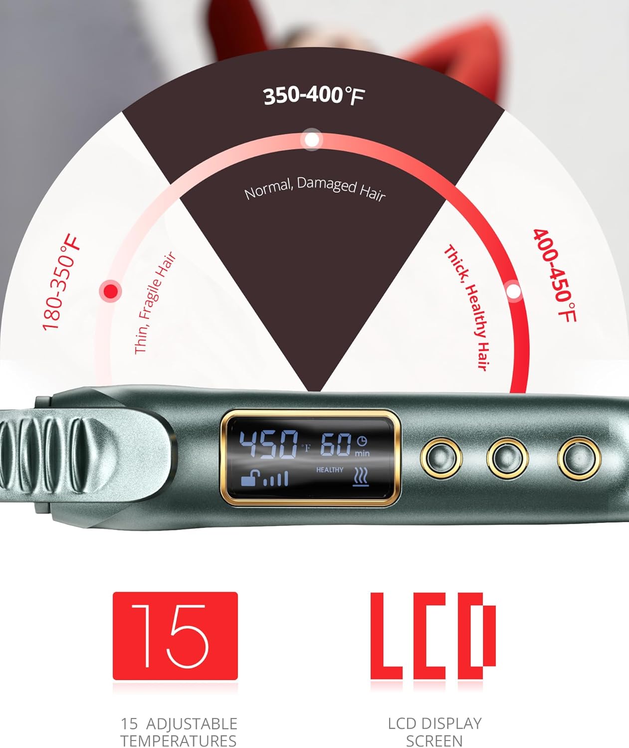 【LCD Digital Display & 15 Temperature Settings】This 3/8-inch long barrel curling iron offers adjustable temperatures with 15 precise control options, ranging from 180℉ to 450℉. This wide range of temperature settings makes it suitable for various hair types, including thin, normal, and thick, coarse hair.