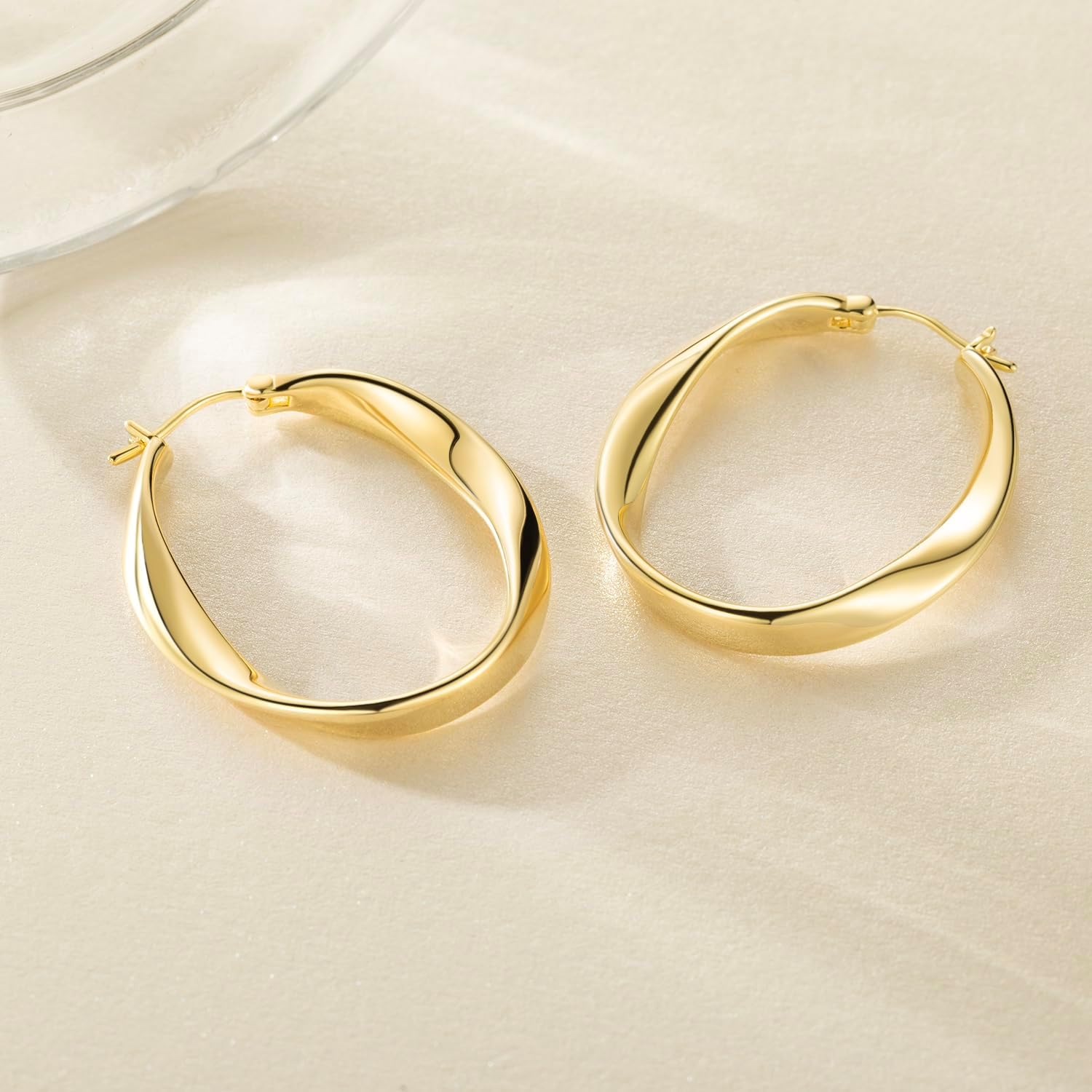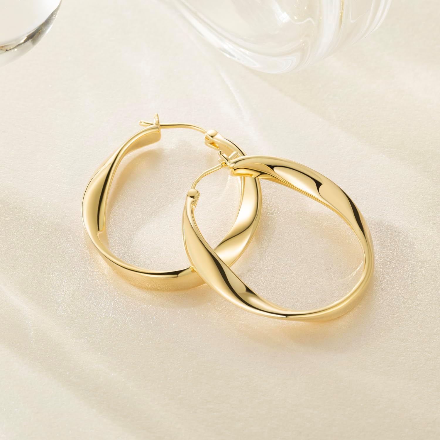 14K Gold Hoop Earrings for Women Large Earring Hoops Thick Hoop Earring Twisted Wave Gold Earrings 30MM