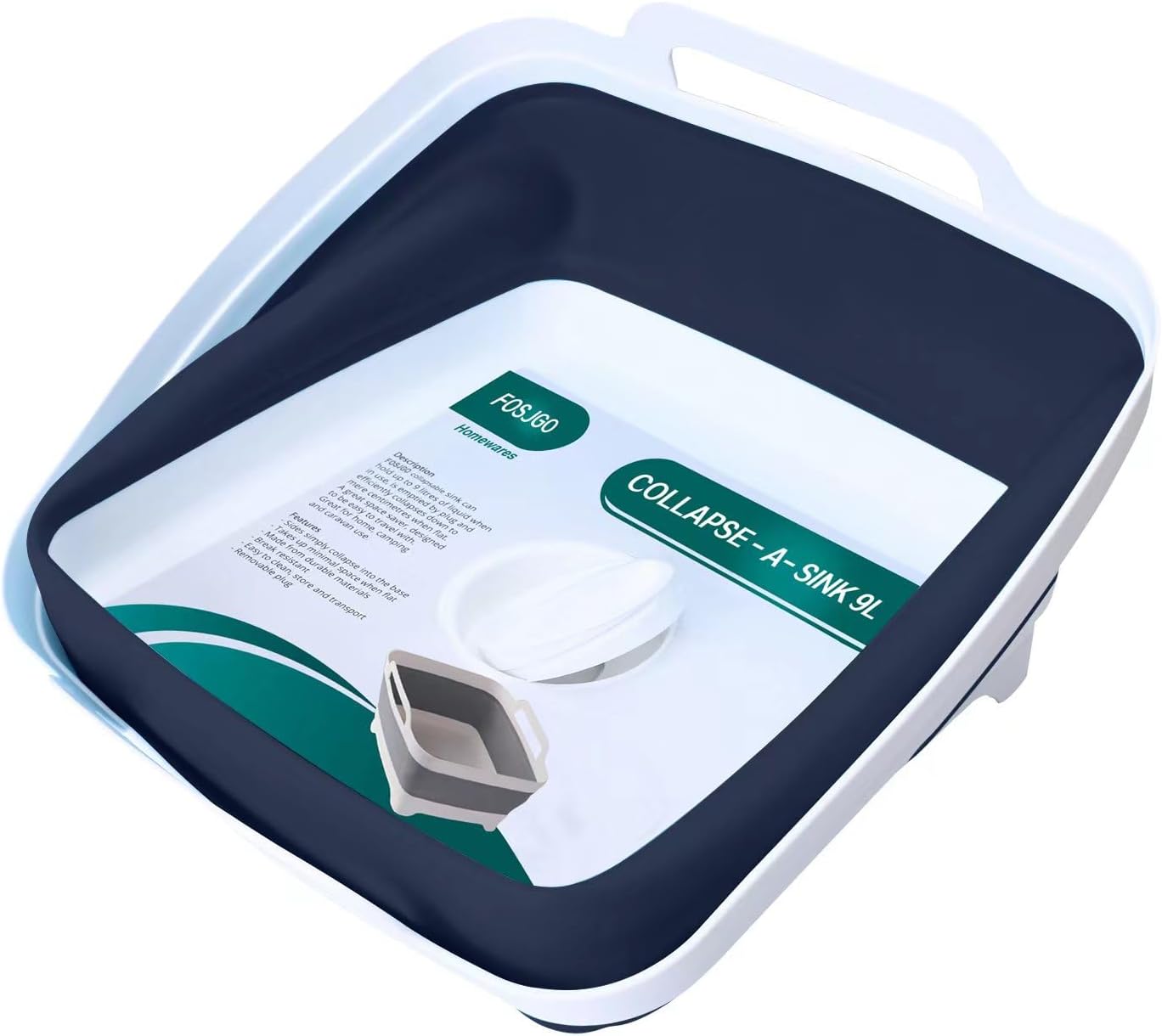 2.4 Gal(9L) Collapsible Dish Basin with Drain Plug,Space Saving Multiuse Foldable Sink Tub,Dishpan,Kitchen Sink for Camping,Plastic Tub,Vegetable Washing,RV