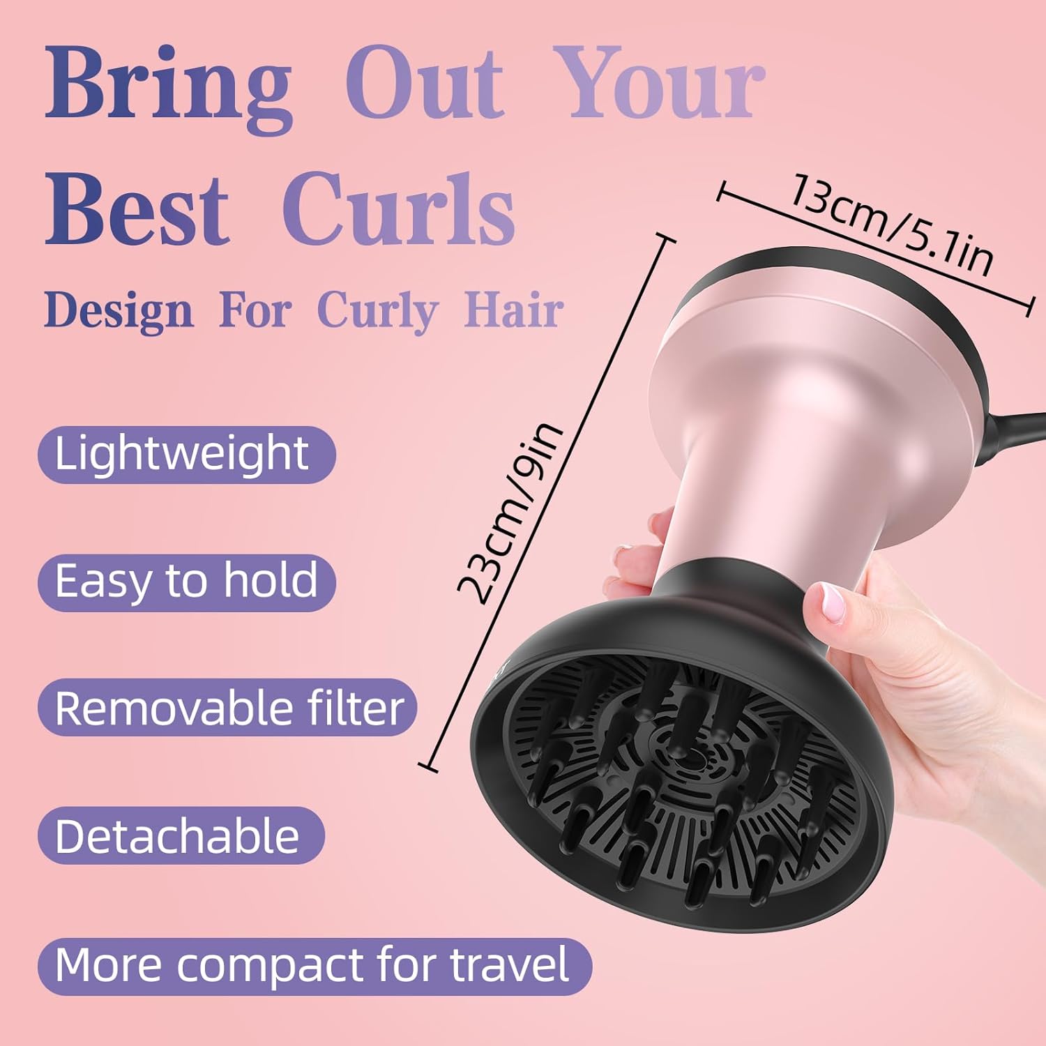 2 In 1 Diffuser Hair Dryer for Curly Hair: Portable 1875W Ionic Hair Dryer w/Diffuser & Comb Nozzle Attachment, Enhances Curl Waves, Reduce Frizz, Overheat Protection, Travel Size, Gifts for Women Her