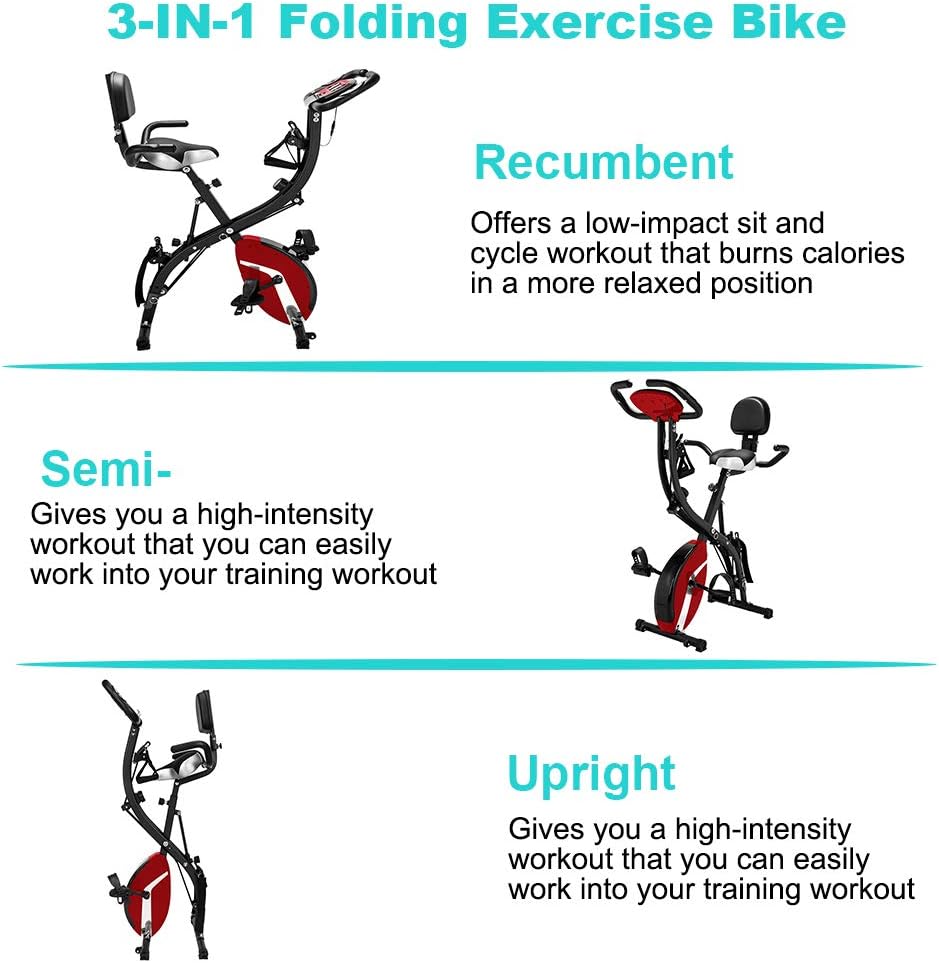 3 IN 1 Magnetic Foldable Upright Exercise Bike, Workout Cycling Folding X Bike w/Hand Pulse Sensor, LCD Display, Large Backrest, Comfy Seat and Handles, Stationary Recumbent Bike (Pink)