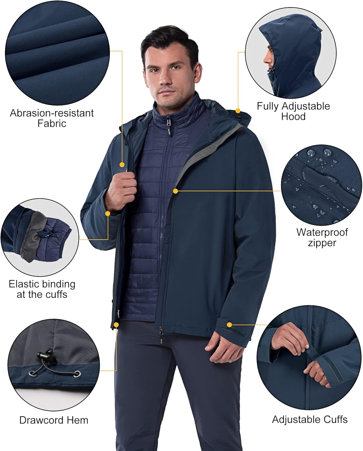 33,000ft Men’s Waterproof 3-in-1 Ski Jacket, Warm Mountain Windbreaker Snow Rain Jackets Winter Coat with Puffer Jacket