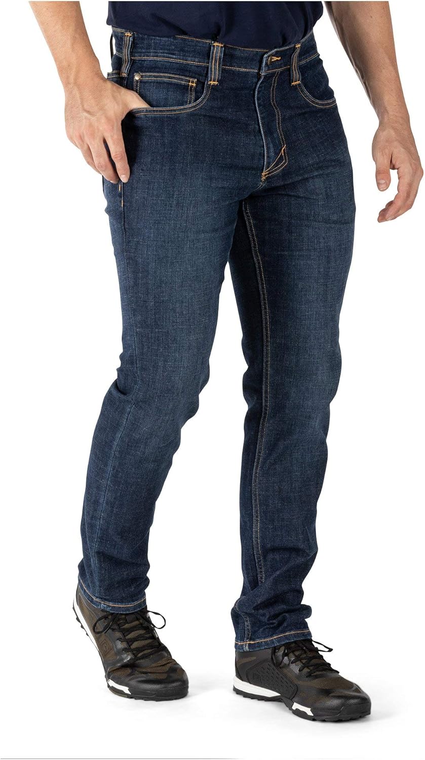 5.11 Tactical Mens Defender-Flex Slim Fit Jeans, Bar Tack Construction, Utility Pockets, Style 74465