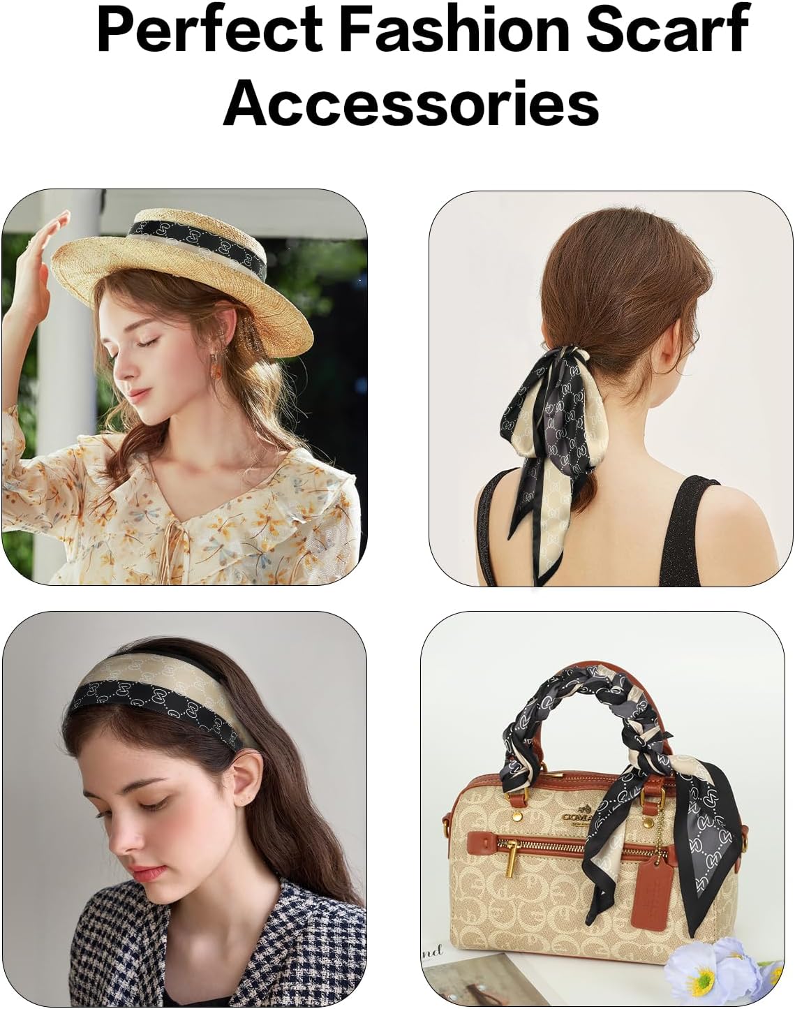 59″ Mulberry Silk Like Head Scarf Women’s Fashion Square Neck Satin Scarfs for Bag Hair Scarves Gift 59″ * 5.9”