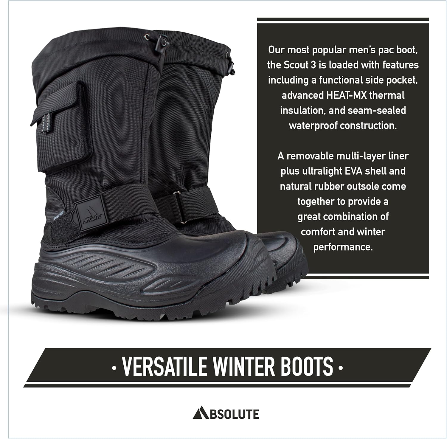 Absolute Scout 3 Tall Snow Winter Boots for Men, Warm, Insulated, Waterproof