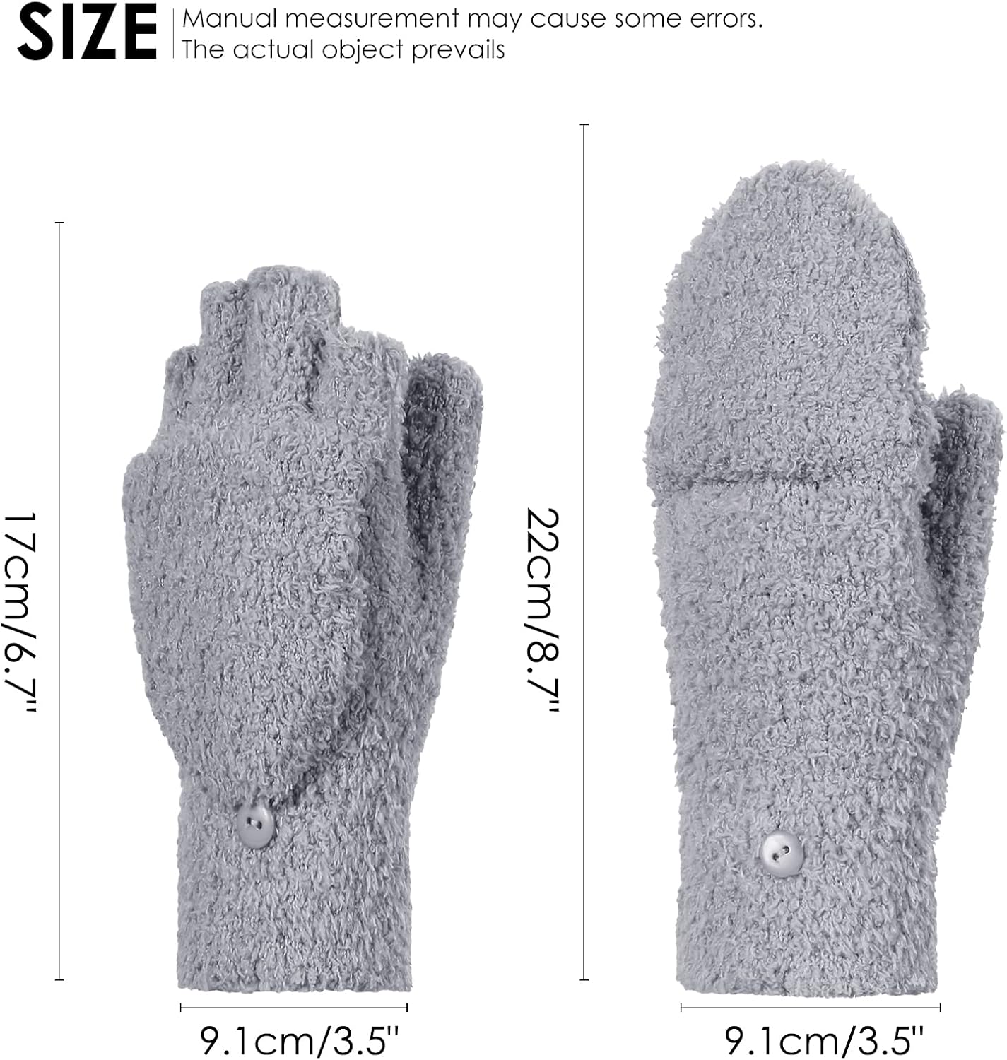 Achiou Warm Fingerless Gloves for Women Men, Convertible Winter Fingerless Mittens with Flip-top Cover, Knitted Wool Glove