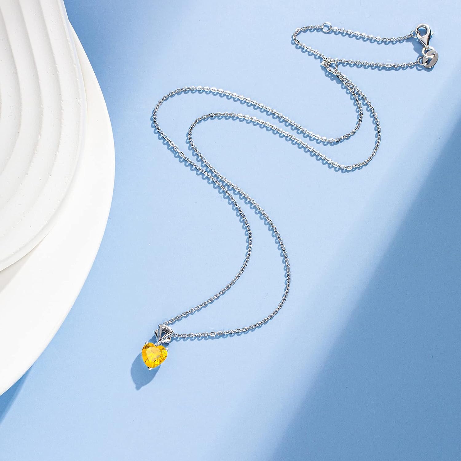AGVANA 14K White Gold Gemstone Pendant with Sterling Silver Chain 8mm Heart Birthstone Necklace for Women Fine Jewelry Anniversary Birthday Gifts for Women Mom Wife Girlfriend Her