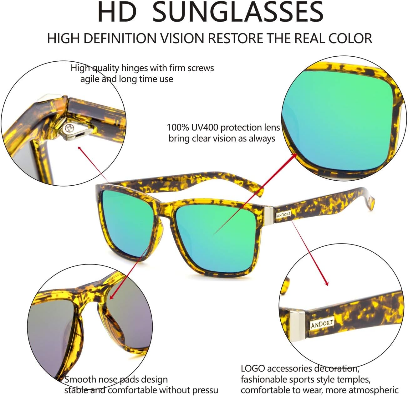 ANDOILT Sport Polarized Square Sunglasses
