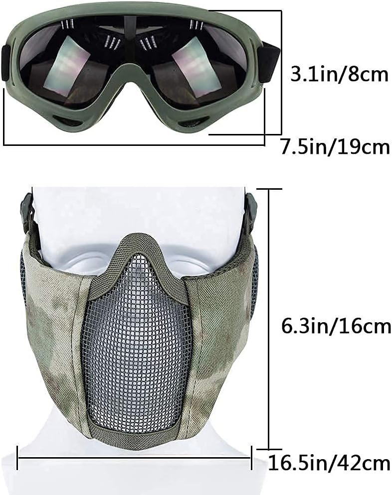 AOUTACC Airsoft Protective Gear Set, Half Face Mesh Mask with Ear Protection and Tactical Goggles for Adult Men Women BBS Paintball Shooting CS Survival Games Cosplay