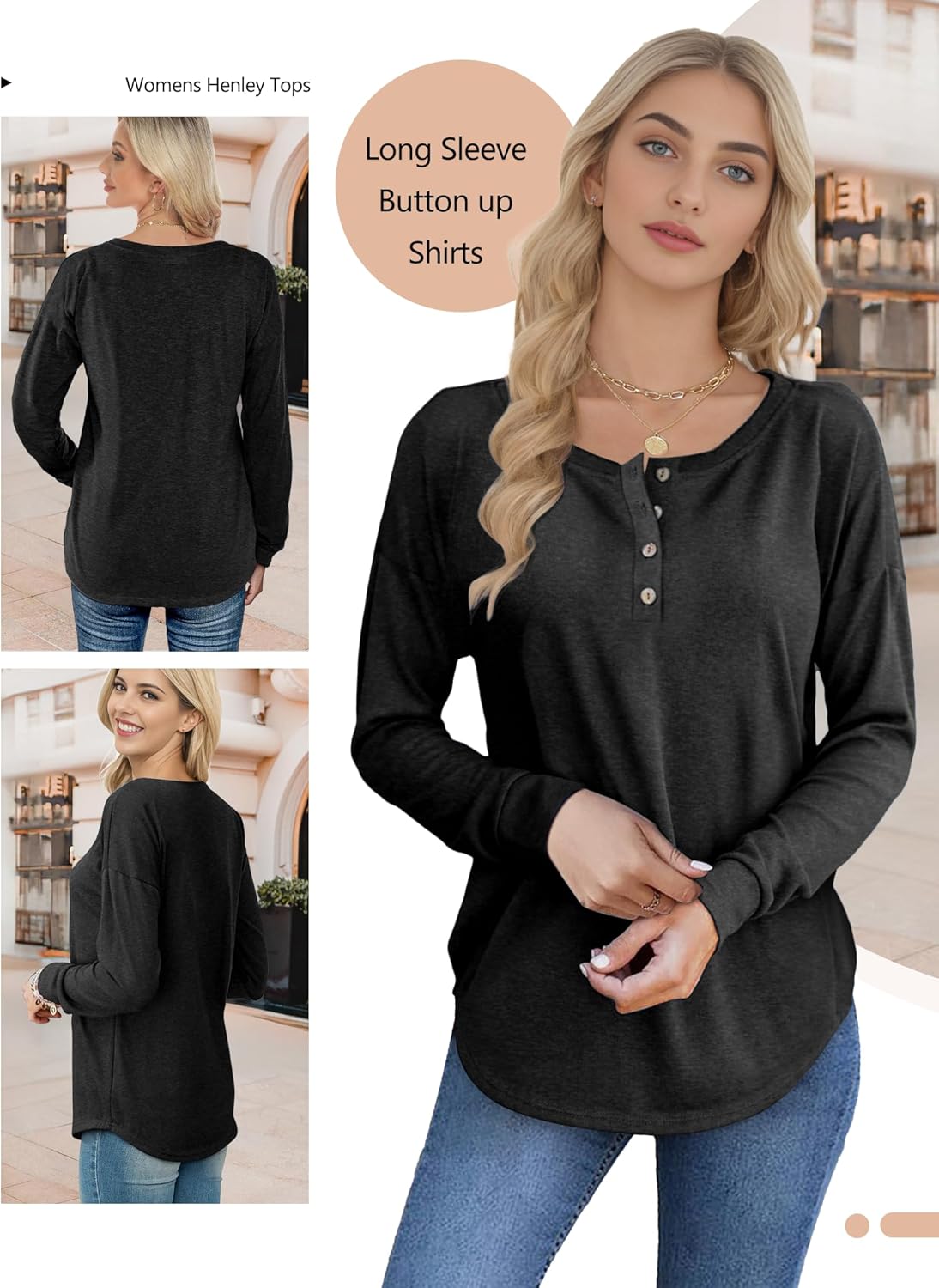 AURUZA Long Sleeve Shirts for Women Casual Tops Henley Shirts for Women Loose Fit Tunic Tops Fall Outfits Clothes 2024