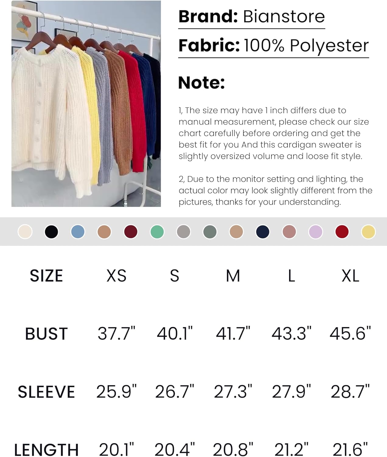 Bianstore Women’s Casual Long Sleeve Crewneck Button Down Cardigan Sweater Knit Outwear