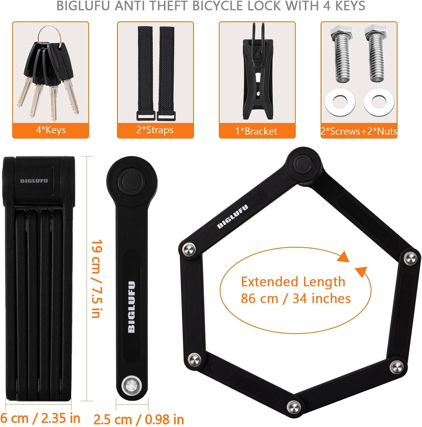 BIGLUFU Folding Bike Lock with Keys