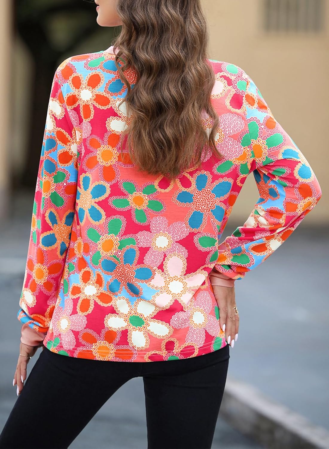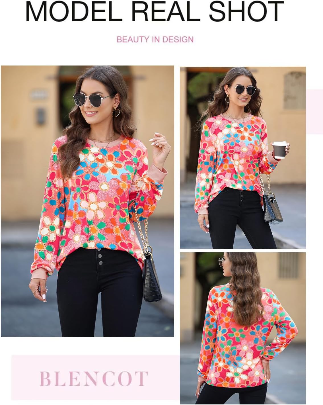 BLENCOT Womens Long Sleeve Shirts Printed Tops Fashion Ladies Knit Work Tops