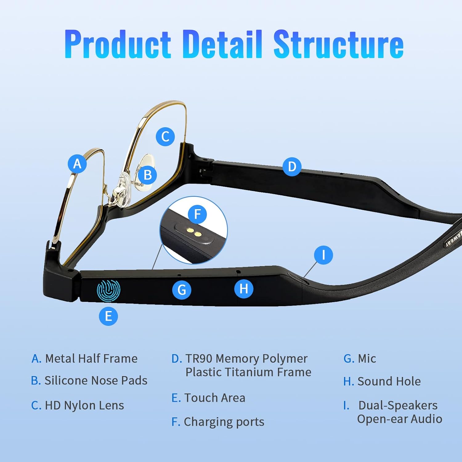 Open Ear Sound Design:Our smart blue light blocking glasses has 2 speakers with wireless bluetooth connectivity which you can listen to music and take calls. The glasses equiped with AAC audio decoding technology ensure you can hear and speak high quality sound.The open ear sound design can let you enjoy your favourite music while remind the suroundings around you.
