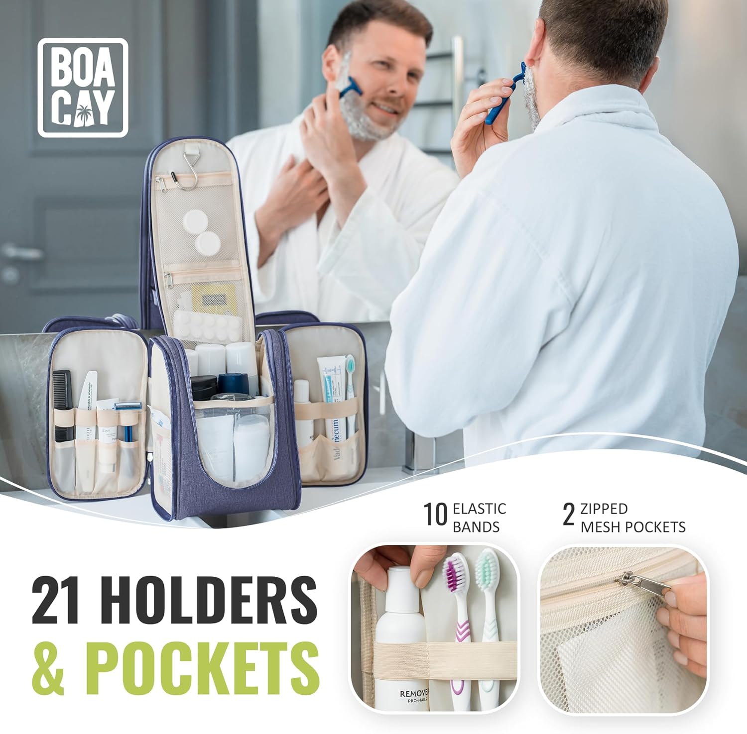 BOACAY Hanging Travel Toiletry Bag for Women and Men, Makeup Bag, Bathroom & Shower Organizer Kit for Accessories, Cosmetics, Travel Essentials