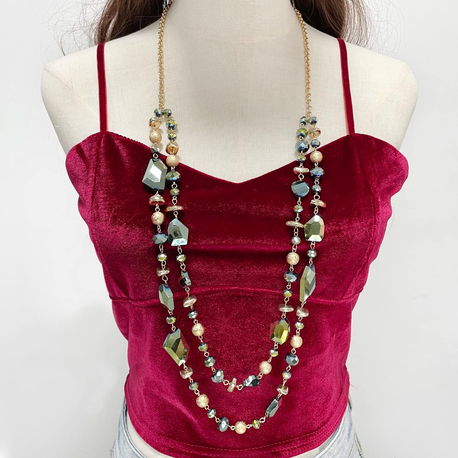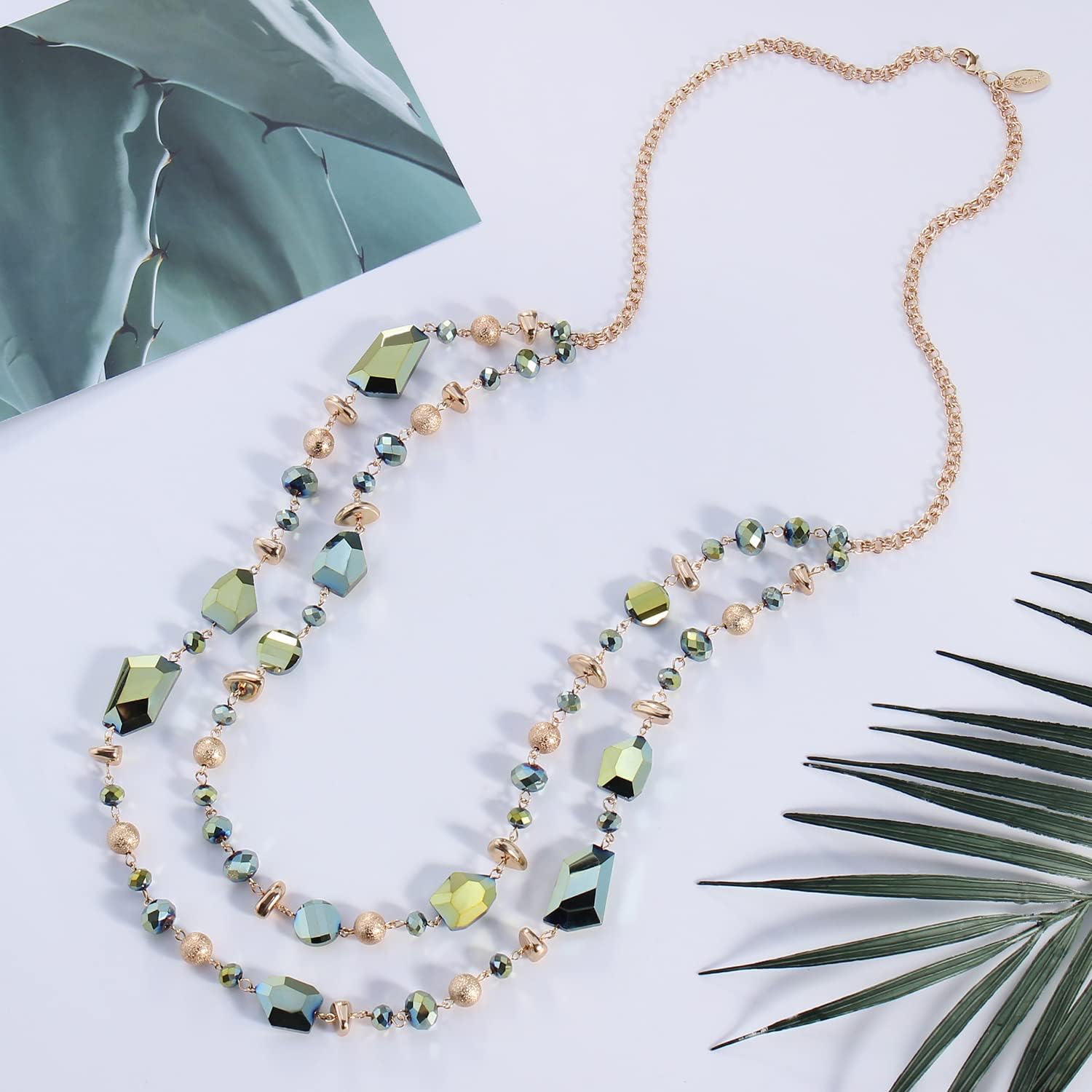 Bocar 2 Layer Long Beaded Necklace Crystal Beads Strand Fashion Jewelry for Women
