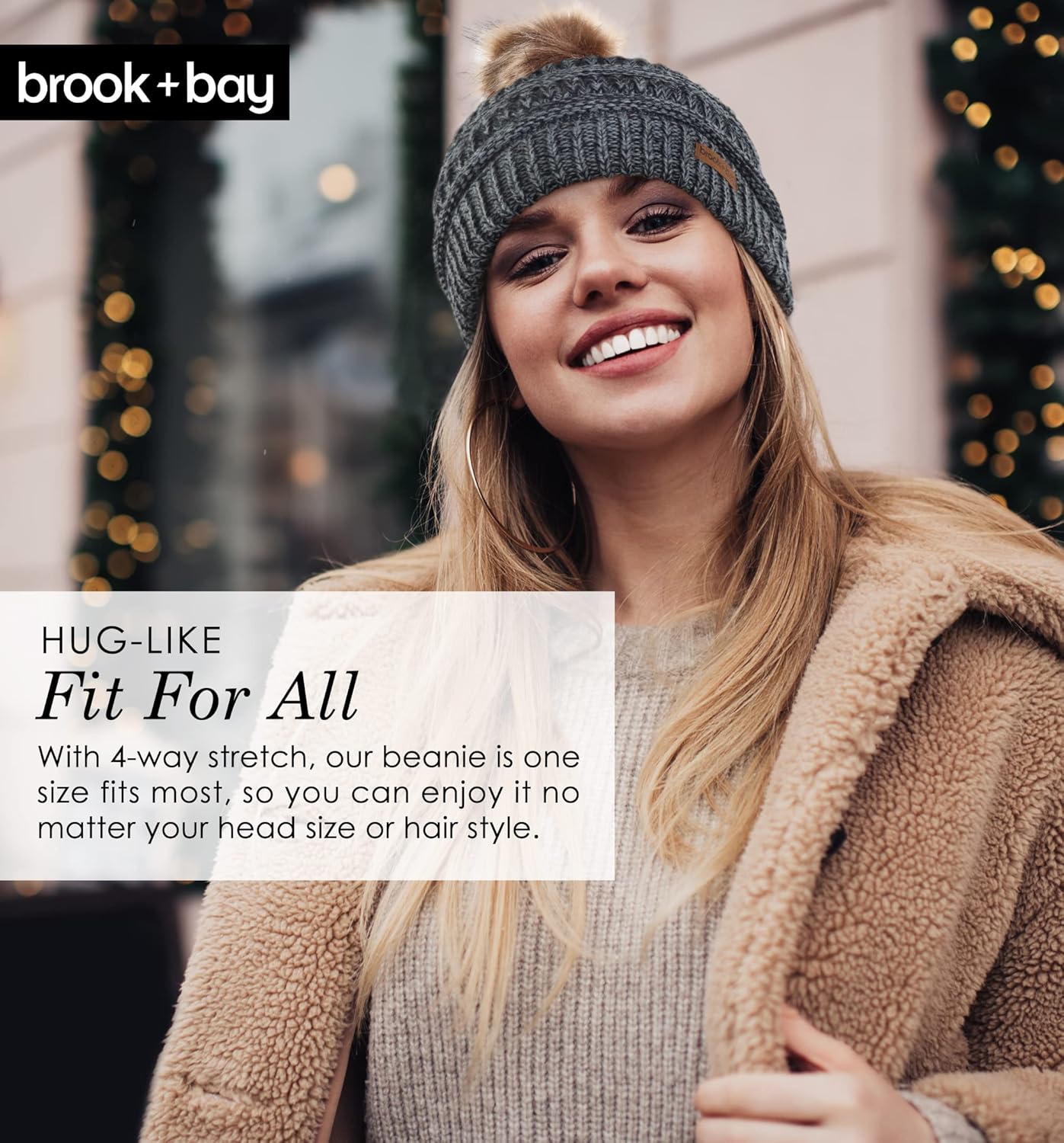 Brook + Bay – Beanie Hats for Women, Pom Pom Hat Soft Chunky Knit Beanie for Cold Weather, Stocking Cap for Women Winter Hats