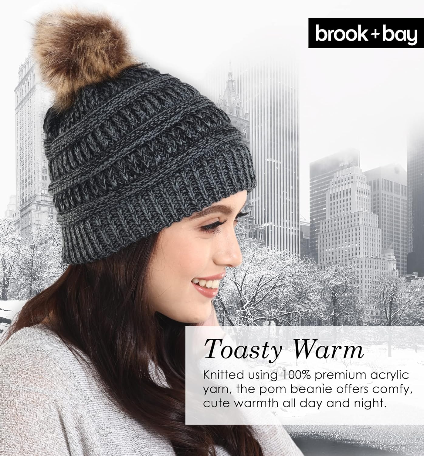 Brook and Bay’s chunky knit, faux fur pom beanies for women are not only super warm, but they come in a mix of winter-ready colors to suit your style. The faux fur beanie pom pom top looks real and stays full and thick over time. Stay casual or pair the pom beanie with a more tailored coat for a night out. Look cute with the women’s pom beanie, no matter the occasion! Designed to take you from morning into night, this womens beanie with pom pom does a lot more than just warm your head: it finishes your look. Perfect for walking, running, hiking, ice-skating, skiing & other outdoor activities.