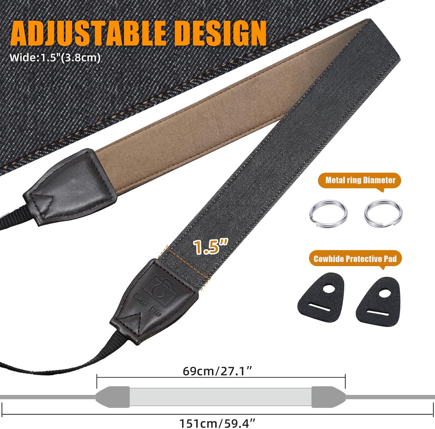 Symuitrc Camera Strap for All SLR / DSLR Cameras,Double Layer top-grain Cowhide Ends,1.5″Wide Pure Cotton Woven Vintage Camera Strap
