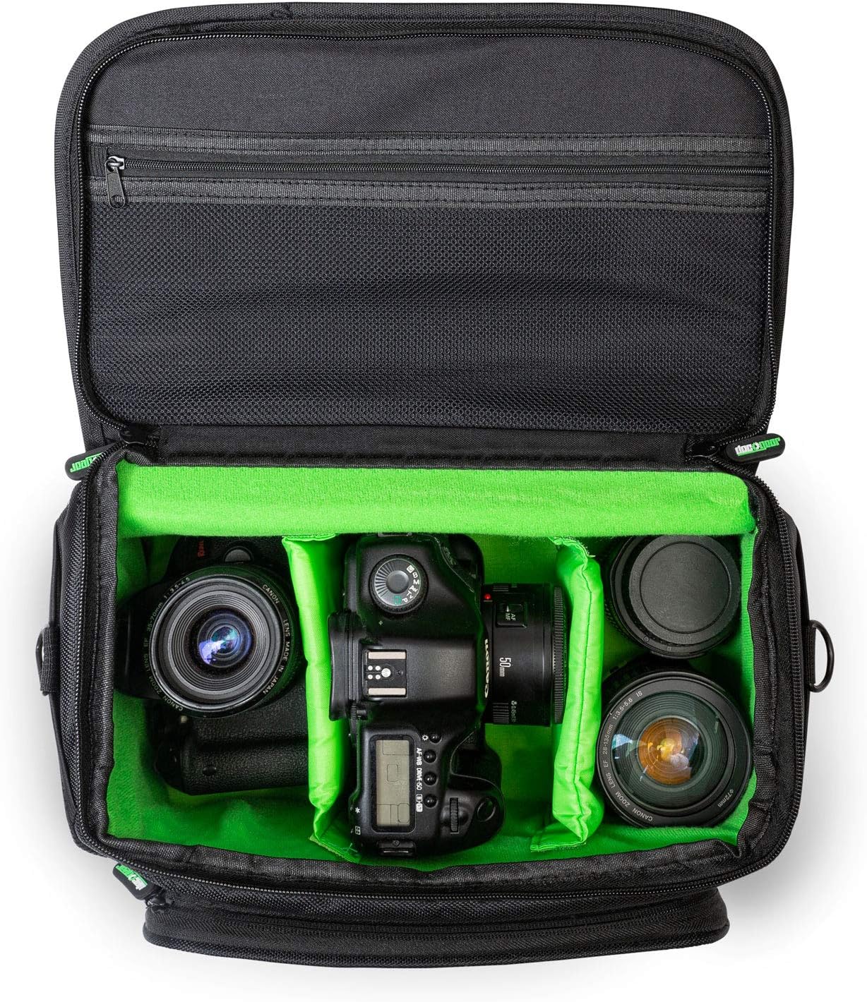 Keep your camera and accessories safe with the Deco Gear Camera Bag. This durable and lightweight bag features dual zippers, mesh pockets, adjustable straps, and a rain cover, ensuring maximum protection and easy organization. The included accessory kit has everything you need, from a lens blower and pen to a mini tripod and cleaning supplies.