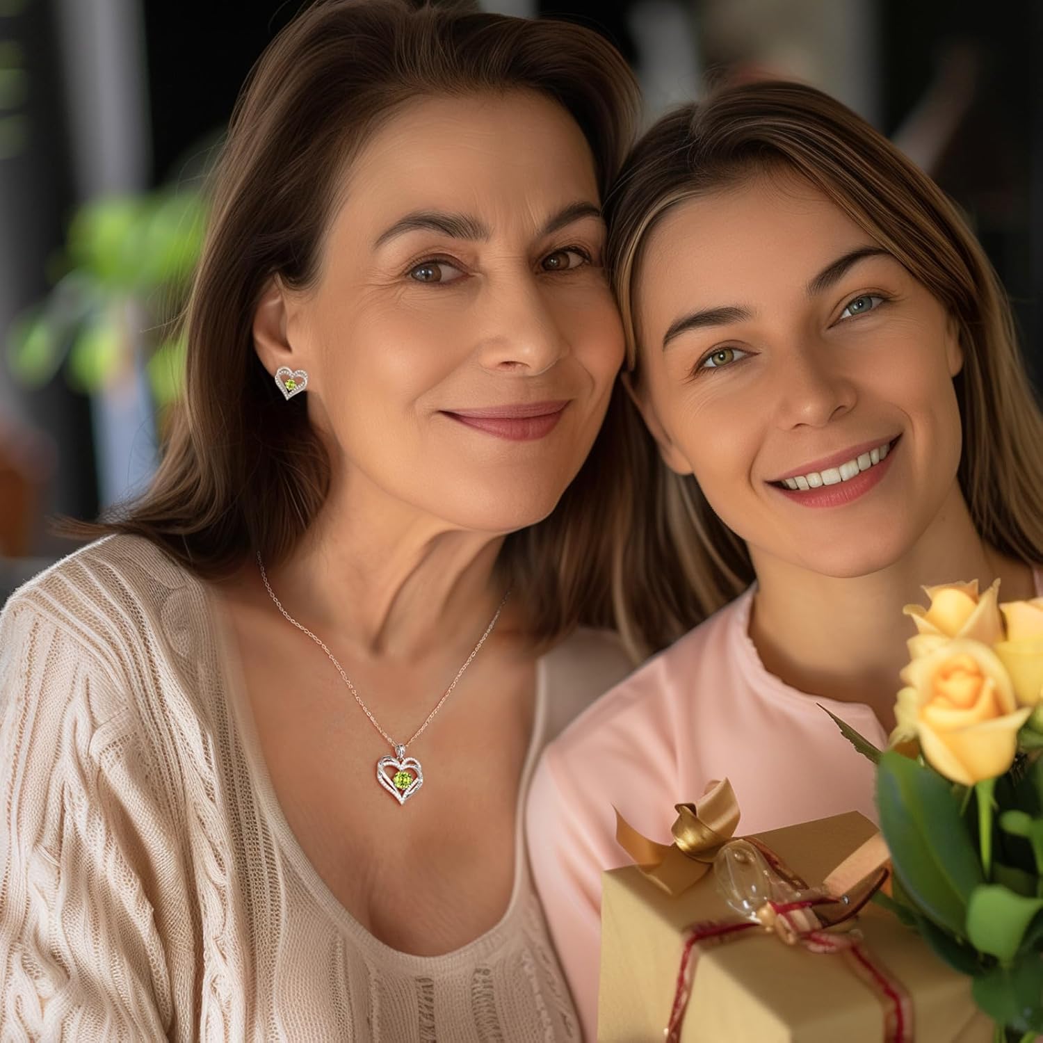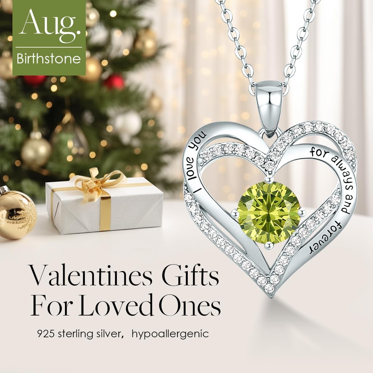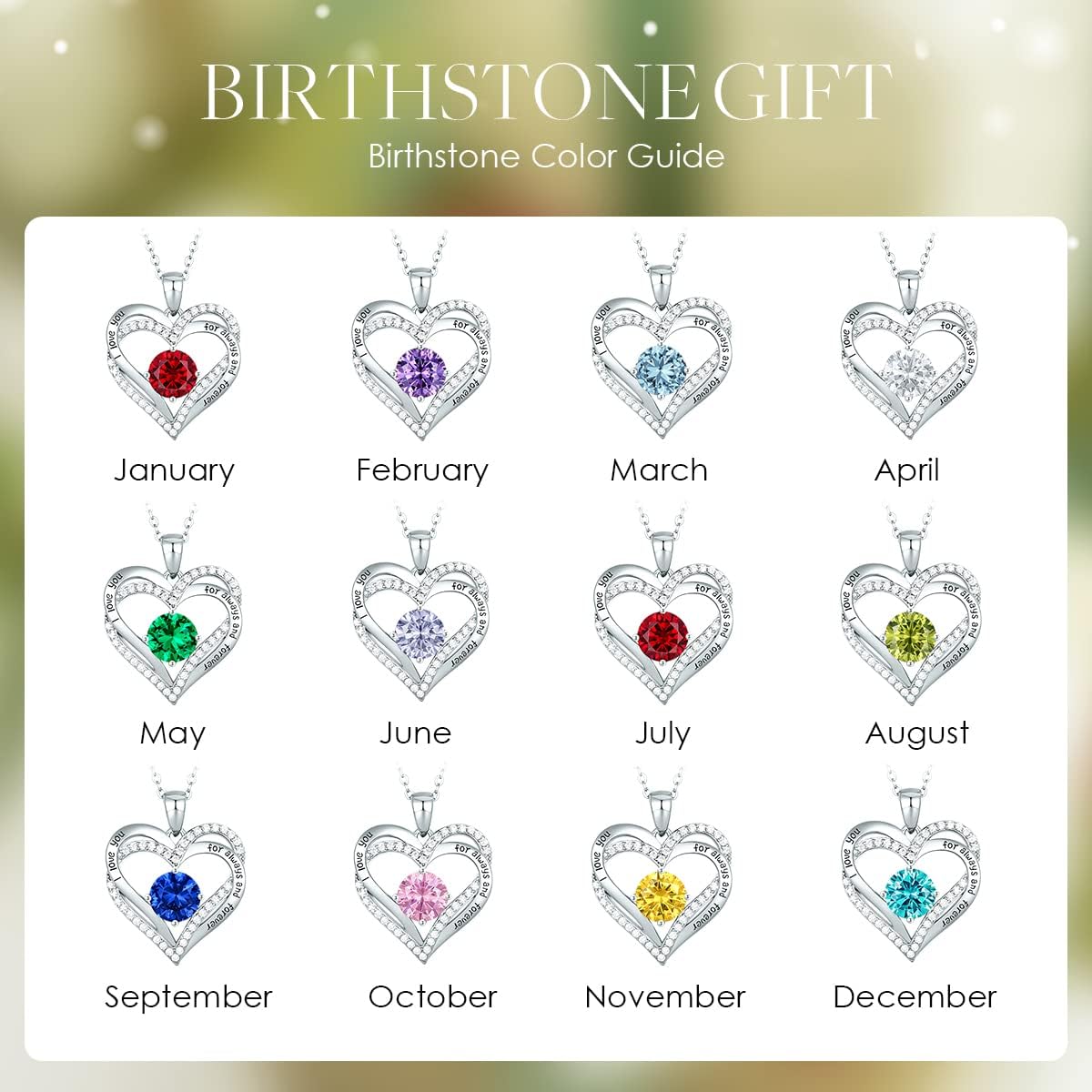 CDE Forever Love Heart Necklaces for Women, Wedding Anniversary, Birthday Gift for Wife, S925 Silver Jewelry with Birthstone Pendant