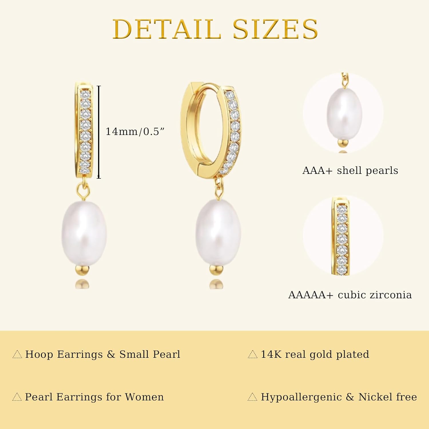 CHESKY Pearl Hoop Earrings for Women, Trendy 14k Gold Plated Hoop Earrings Chunky Pearl Drop Earrings for Women Hypoallergenic Gold Pearl Dangle Huggie Earring Statement Pearl Jewelry Gifts for Her