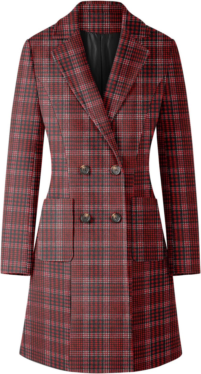 CHICZONE Women’s Notch Lapel Double Breasted Mid Long Pea Coat Wool Blend Overcoat Winter Outwear