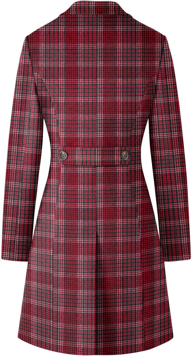 Women’s Notch Lapel Single Breasted Wool Blend Plaid Over Coat Mid-Long Jacket