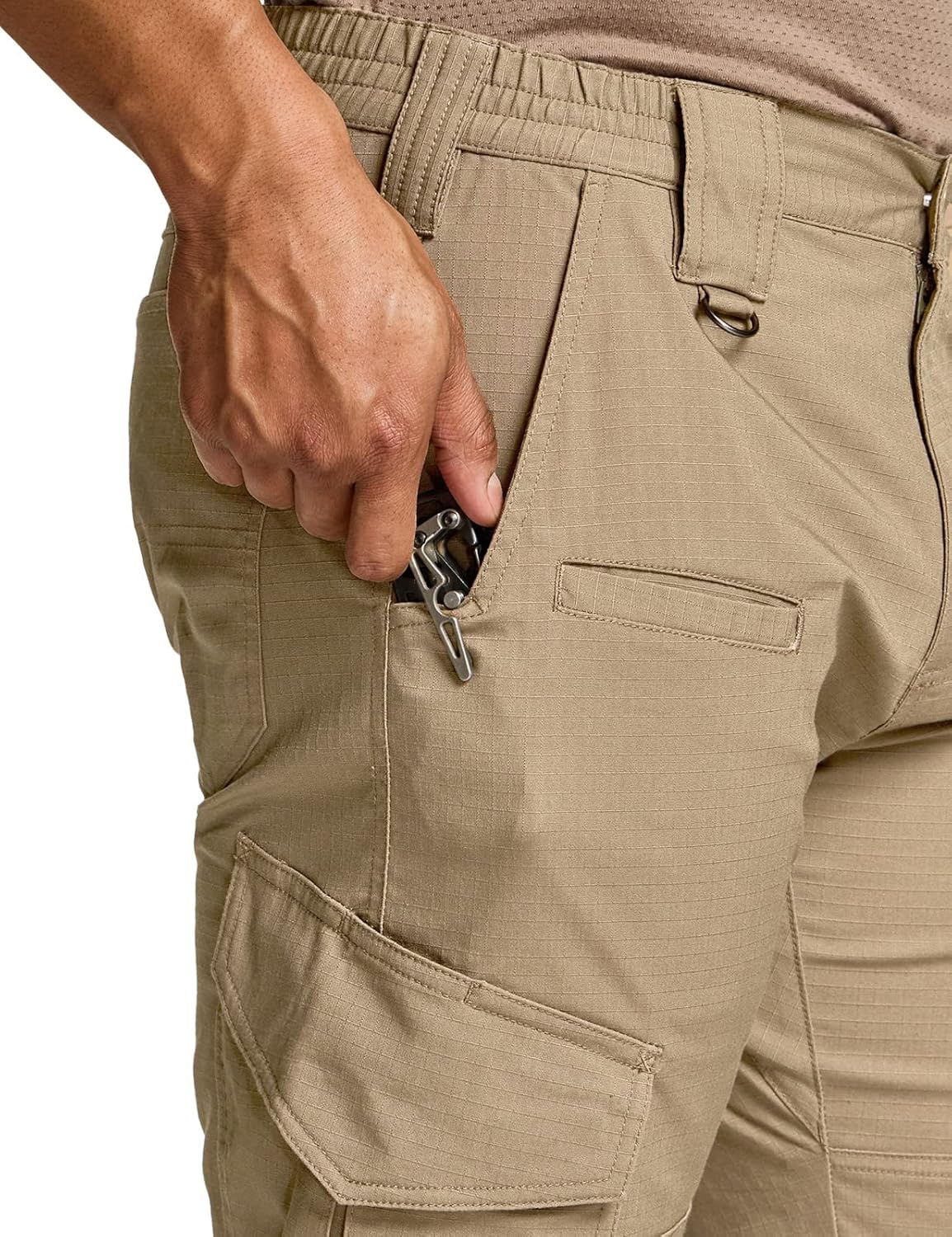 CQR Men’s Flex Ripstop Tactical Pants, Water Resistant Stretch Cargo Pants, Lightweight EDC Hiking Work Pants