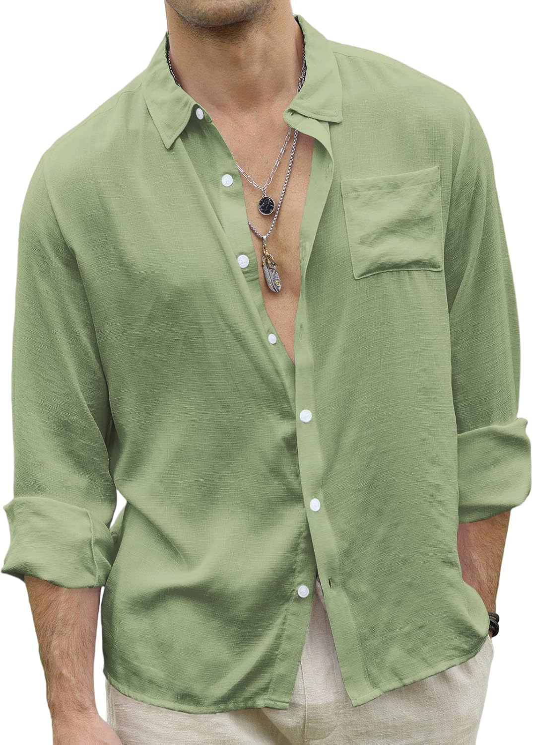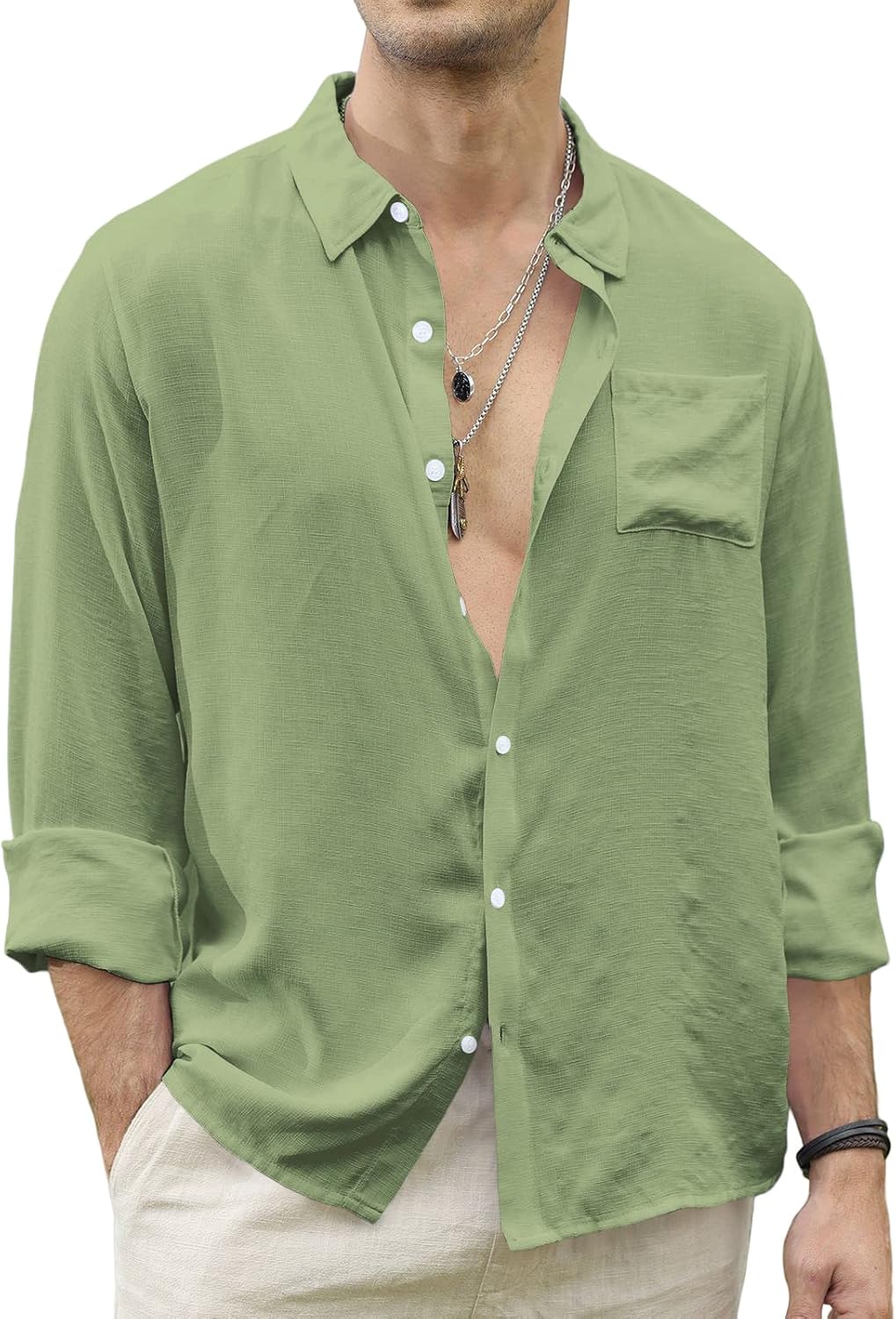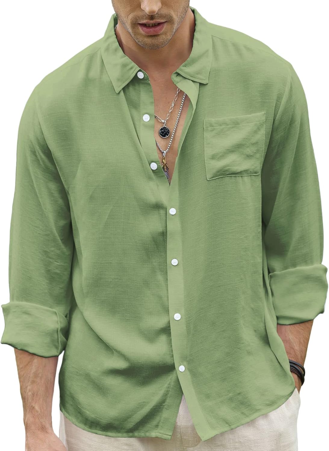 CTU Men’s Fashion Summer Casual Button Down Shirt Long Sleeve Solid Color Holiday Beach Shirts