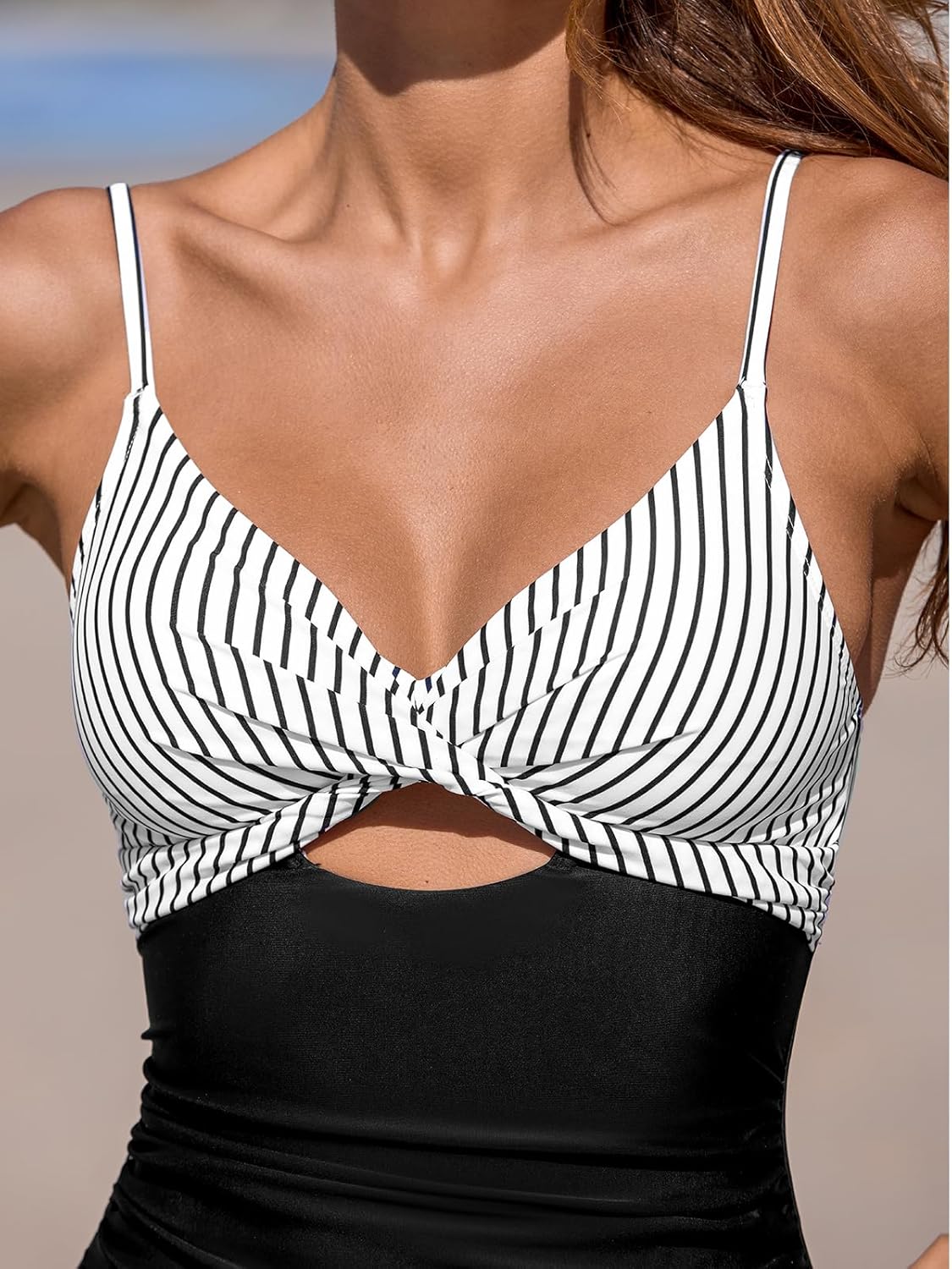 CUPSHE One Piece Swimsuit for Women Bathing Suits Twist Front Cutout Adjustable Straps Ruched Swimwear