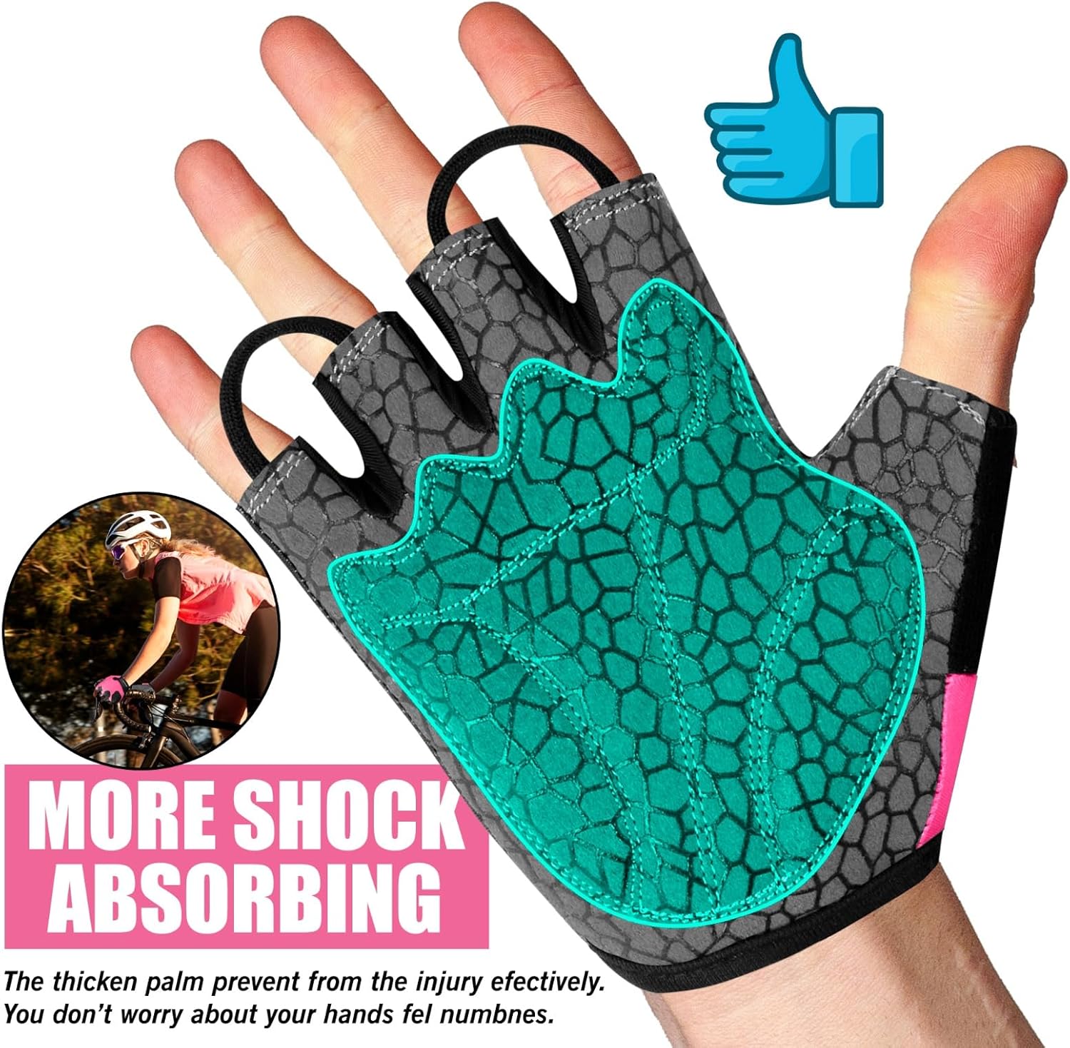 Cycling Gloves Half Finger Unisex Padded Grips Palm Bicycle Summer MTB Bike Gloves for Men Women Non-Slip Fingerless Short Mountain Bike Sports Hiking Climbing Gym