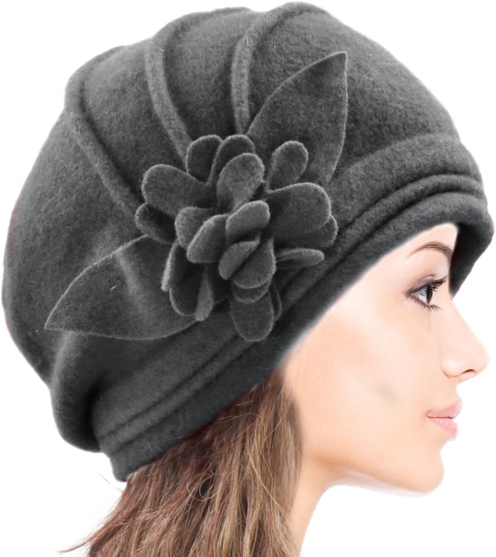 Dahlia Women’s Winter Hat – Wool Cloche/Bucket Hat, Slouch, Flower