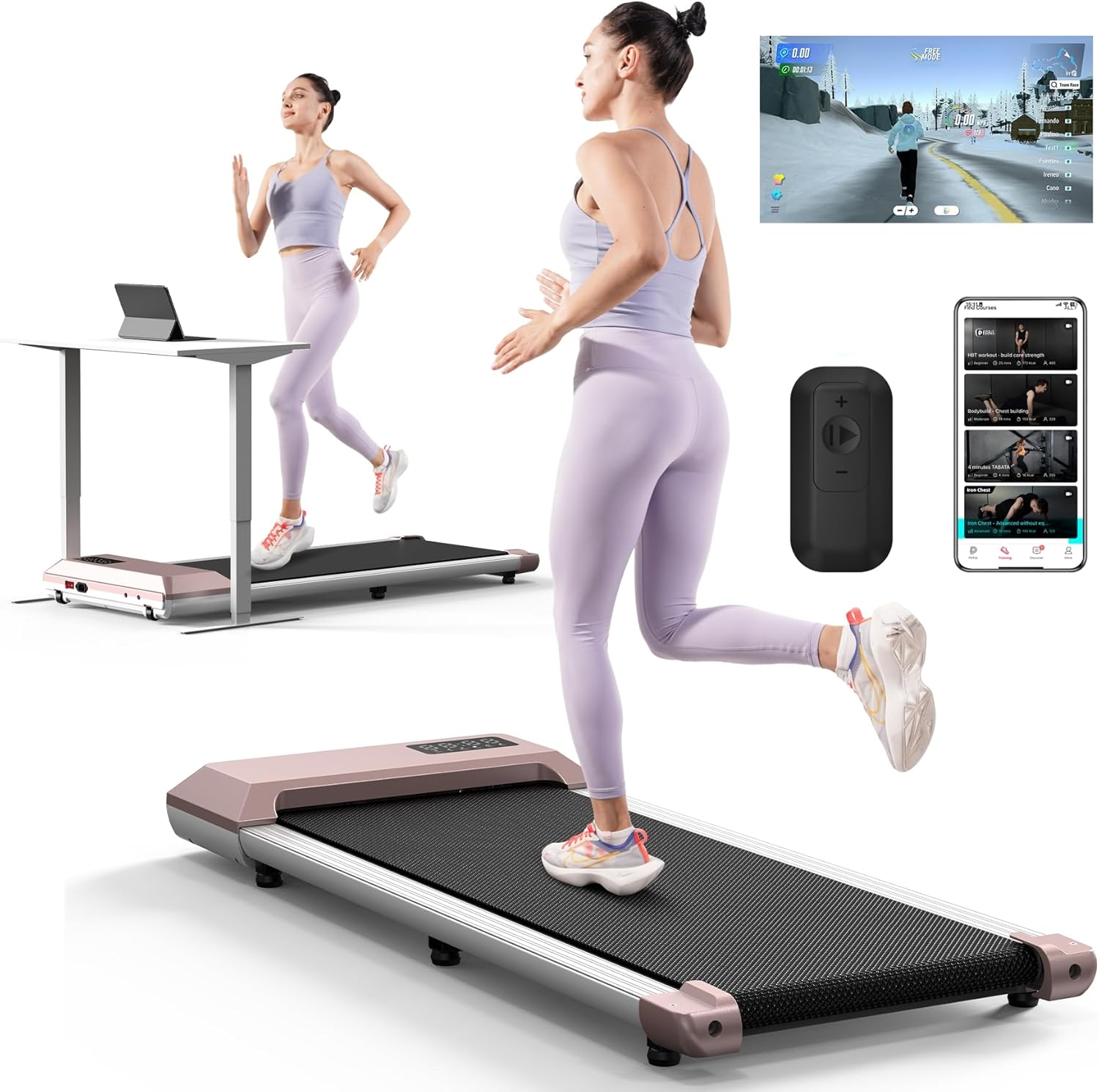 DeerRun Walking Pad, Smart Raceable 2024 Upgrade Under Desk Treadmill, Portable Small Flat Treadmills for Home Weight Loss/Fitness, 265lbs Capacity, LED Display, App & Remote Control