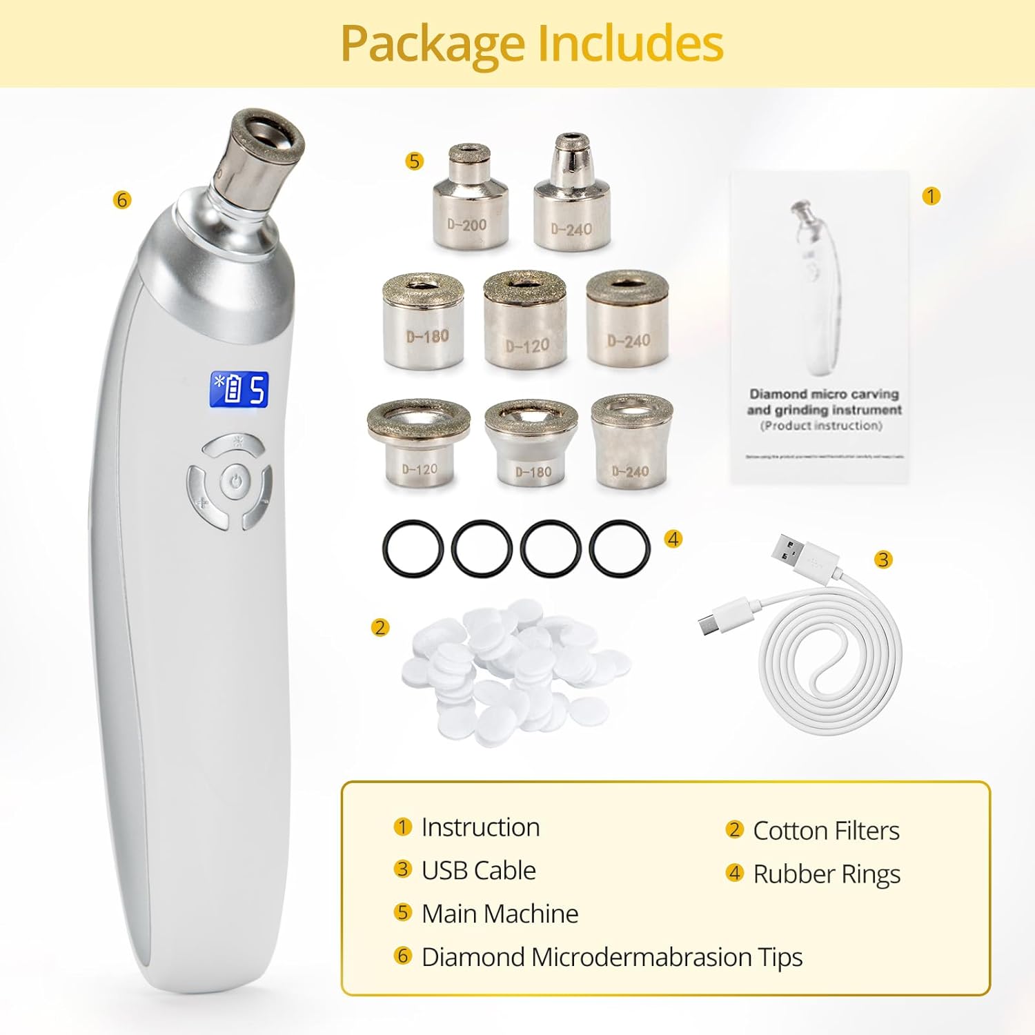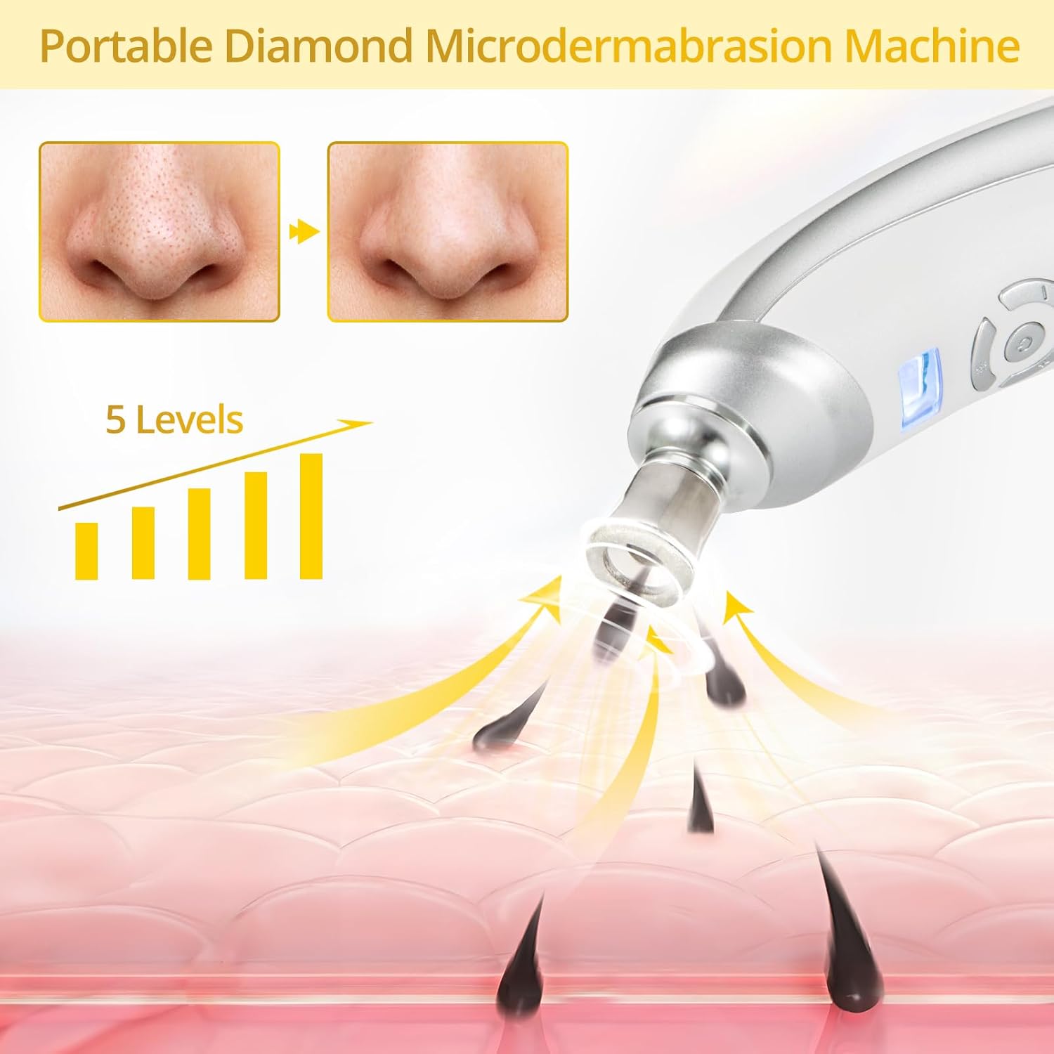 Diamond Microdermabrasion Machine for Exfoliation & Blackhead Removal, at-Home Microdermabrasion Device Tool for Facial, Rechargeable USB Charging with 9 Microdermabrasion Tips