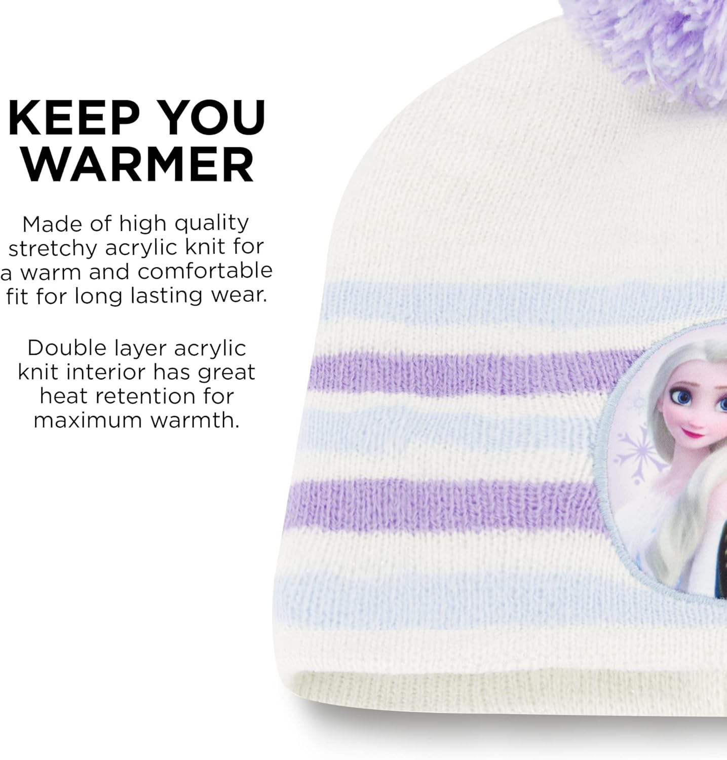 - ADORABLE DESIGN: Matching Frozen Elsa and Anna pattern Winter Hat, Scarf and Kids Glove set with thick earflaps, and features Frozen Elsa and Anna character patch embroidered on the front. Great coverage for Head, Ears, and Neck, and Gloves for their little cute Hands.