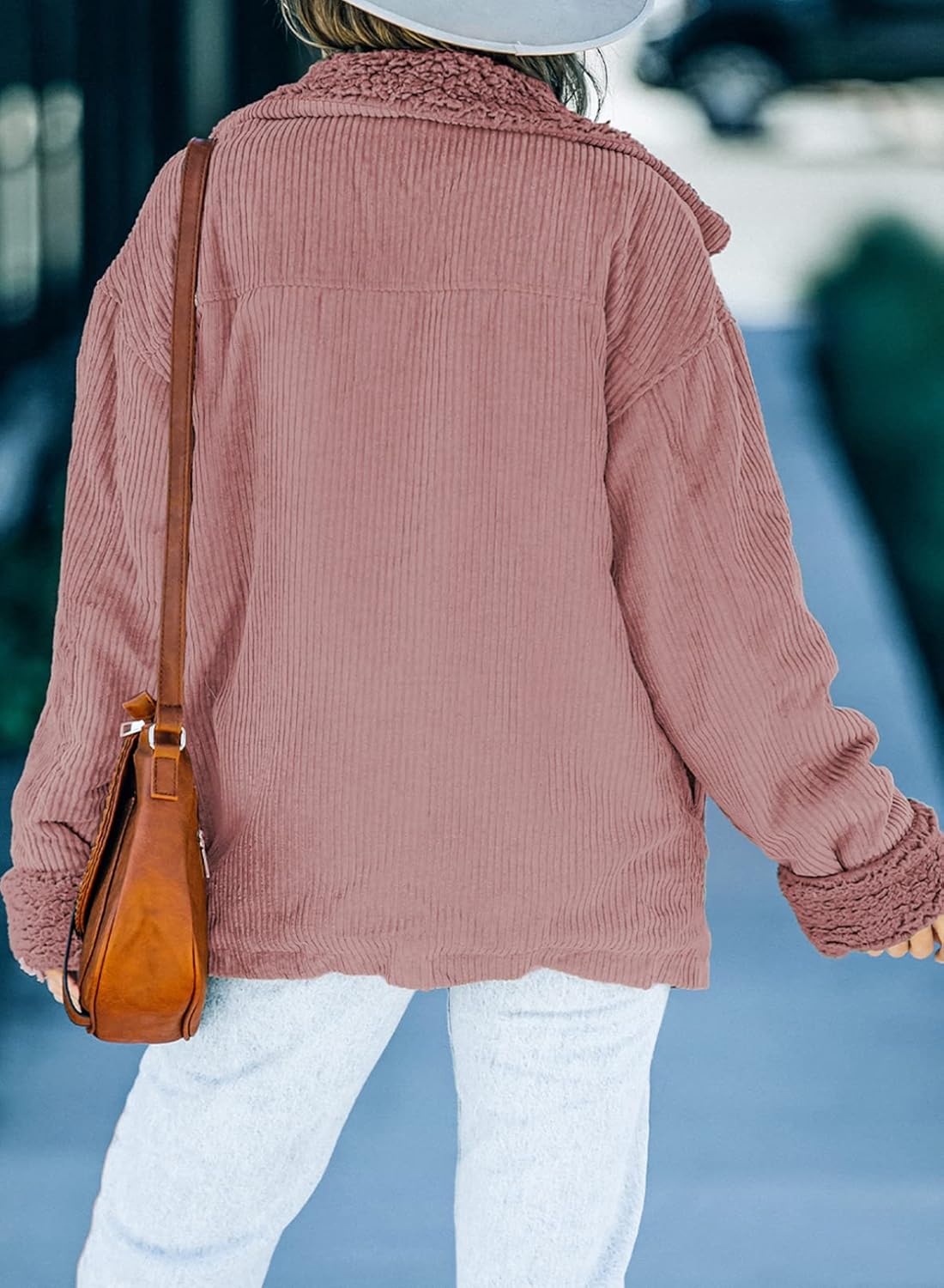 Dokotoo Corduroy Sherpa Jacket for Women Button Down Fleece Fur Collar Winter Warm Coat