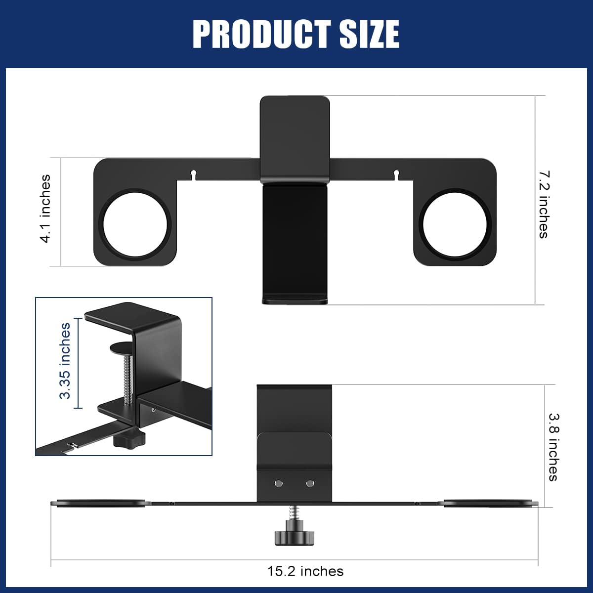 Dollox VR Stand VR Display Holder Under Desk Virtual Reality Headsets Metal Stand Storage Hook Universal Clamp on Desk Hanger Hooks for Oculus Quest 2/Quest/Rift S, HTC Vive Pro, PSVR 2