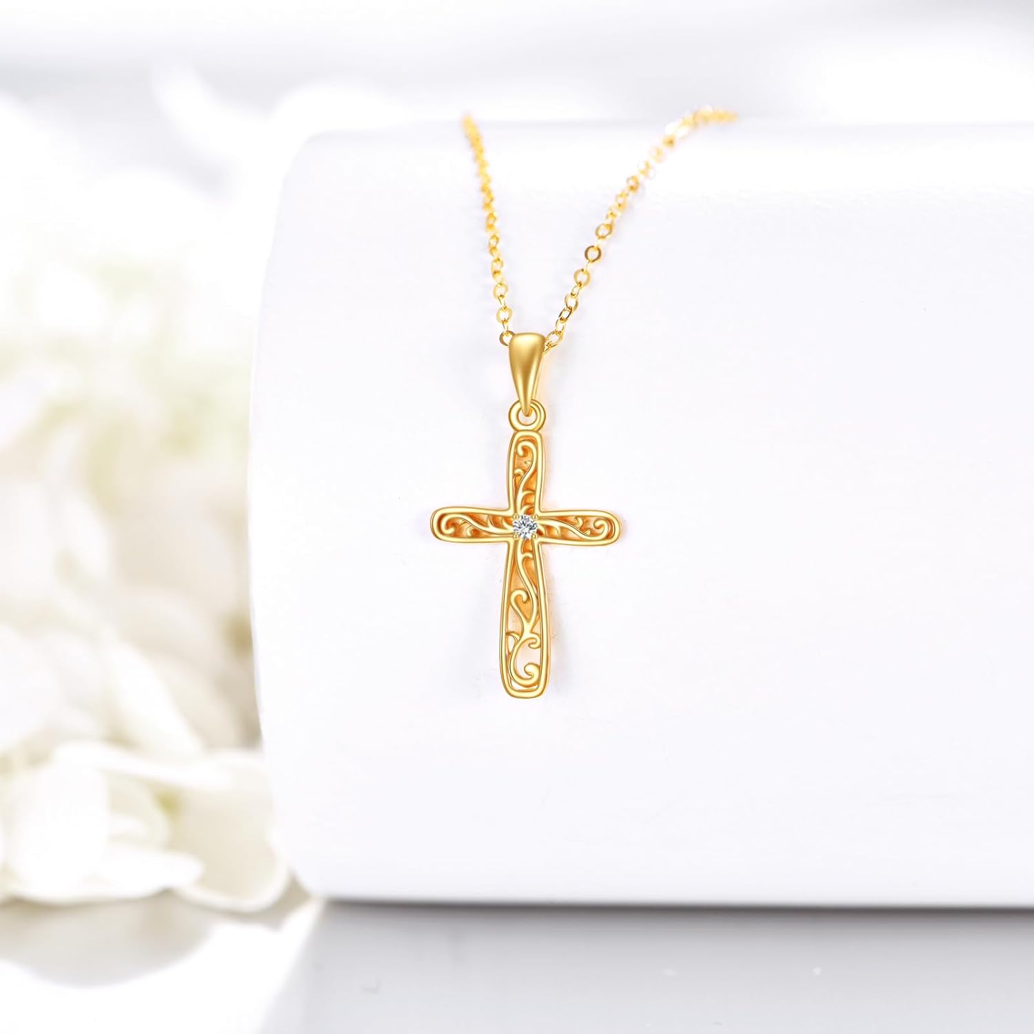 DOVRAN 14K Solid Gold Moissanite Celtic Cross Necklace for Women Cross Pendant Wedding Necklace Real Gold Cross Jewelry for Her