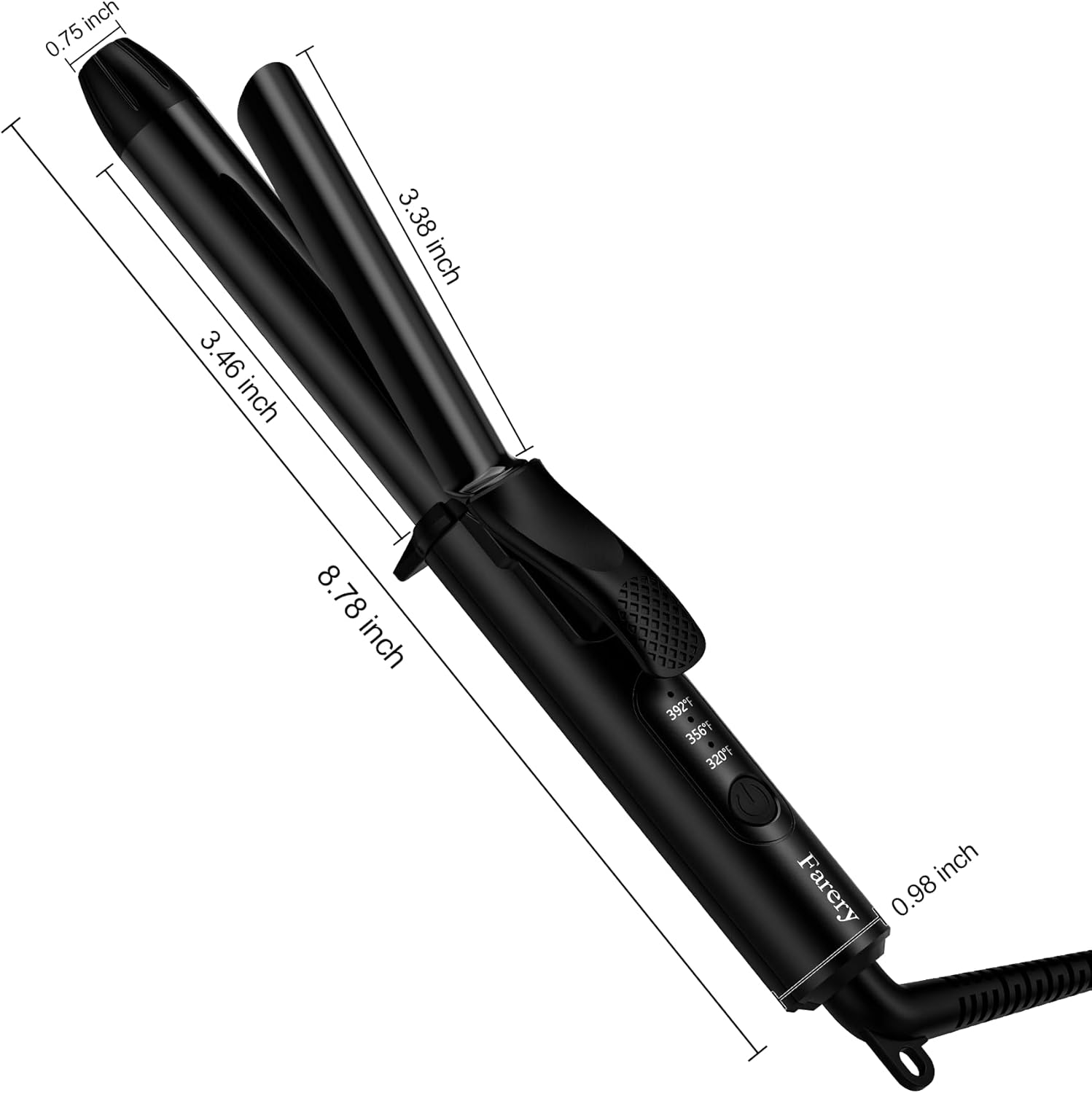 [3 ADJUSTABLE TEMPERATURE & 100% ANTI-SCALD DESIGN] Farery travel hair curler has 3 adjustable temperature: 320/356/392°F, which meets the styling temperature needs of most hair textures. Small but complete in every detail. The 0.78-inch extra-long (compared to its mini size) tapered cool tip could prevent any potential burn effectively. Also, the safety stand could prevent burning tabletop