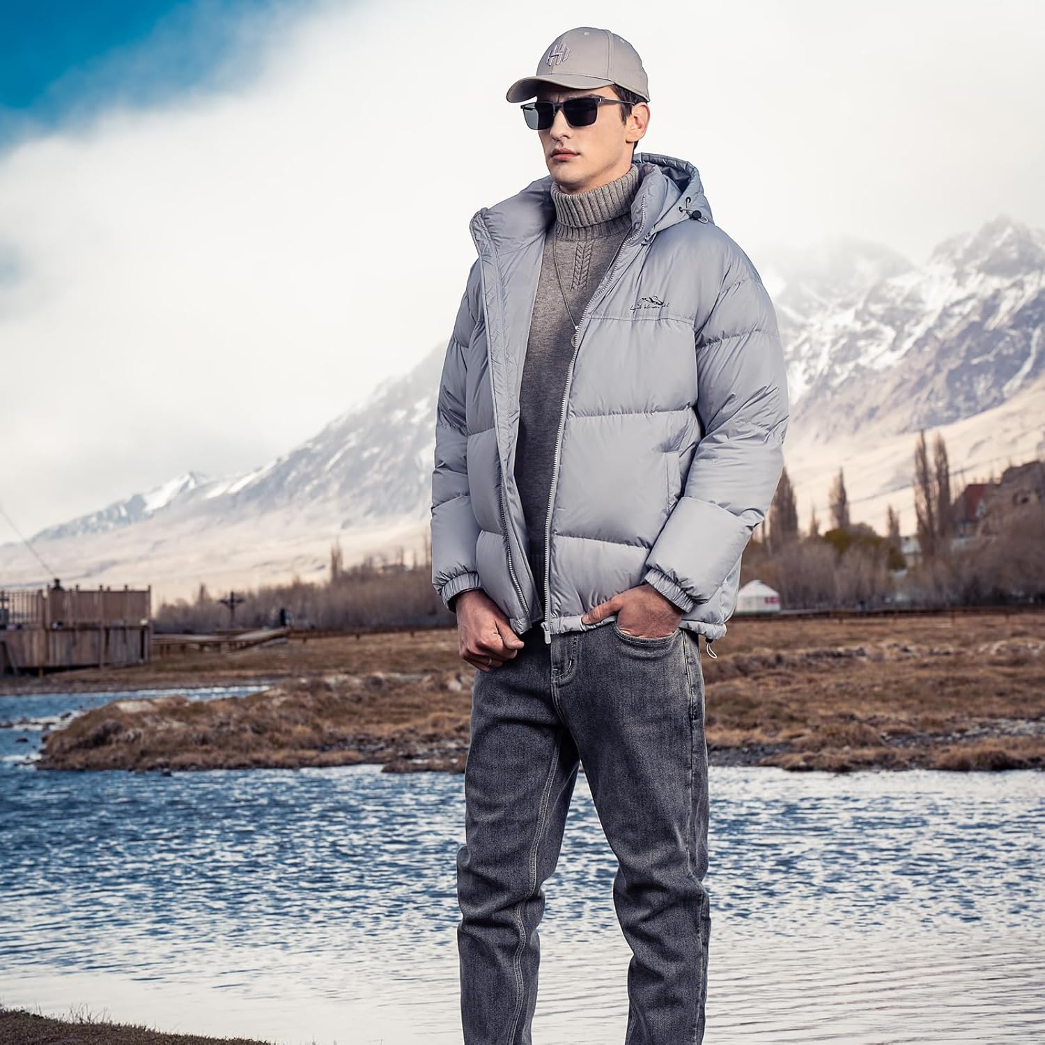 Duck Down Jackets For Men,Mens Puffer Jacket For Cold Protection And Warmth,Hooded Mens Winter Coat,90 White Duck Down