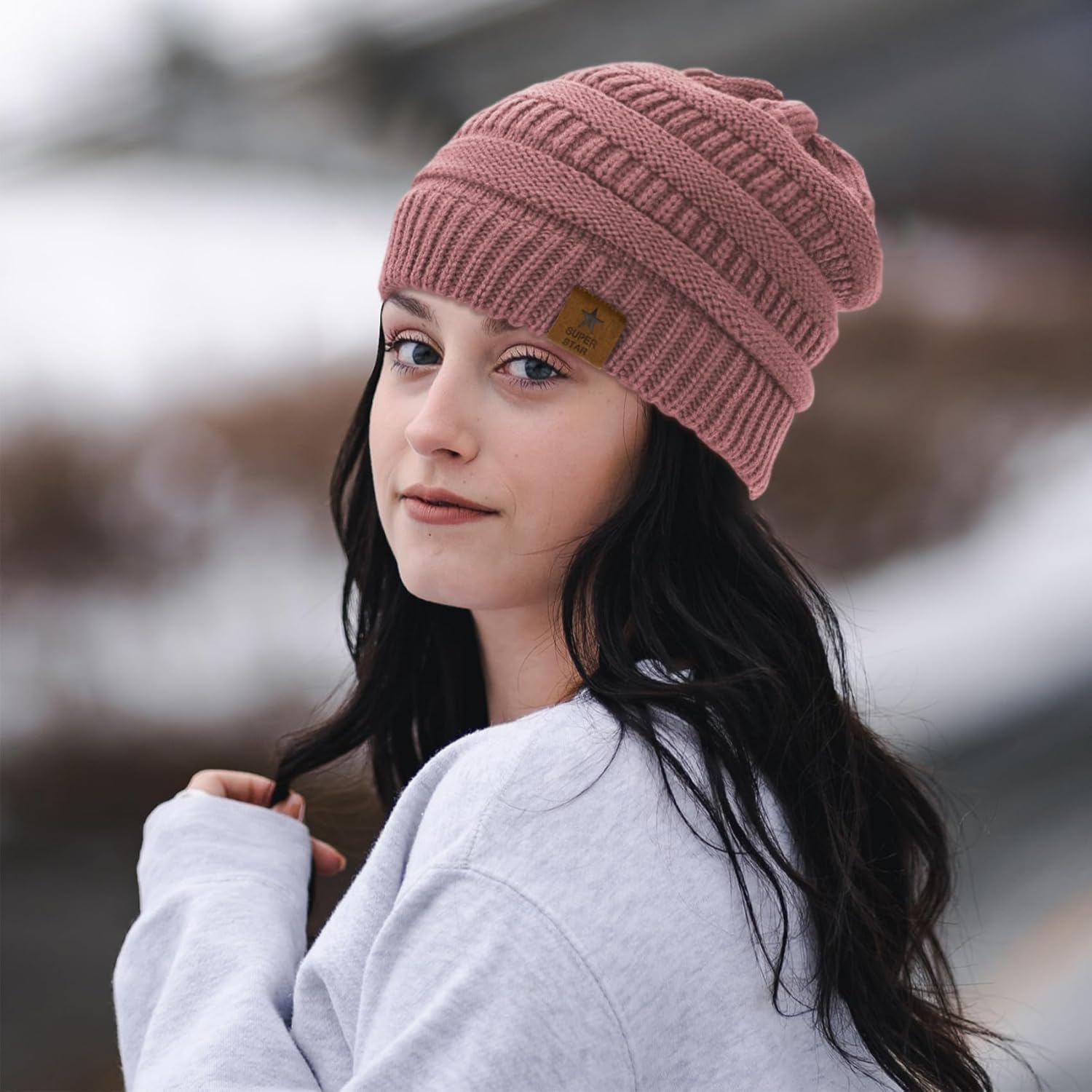 Durio Womens Knit Beanie Winter Thick Solid Fleece Lined Beanie Hats for Women Men Unisex Warm Skiing Beanies