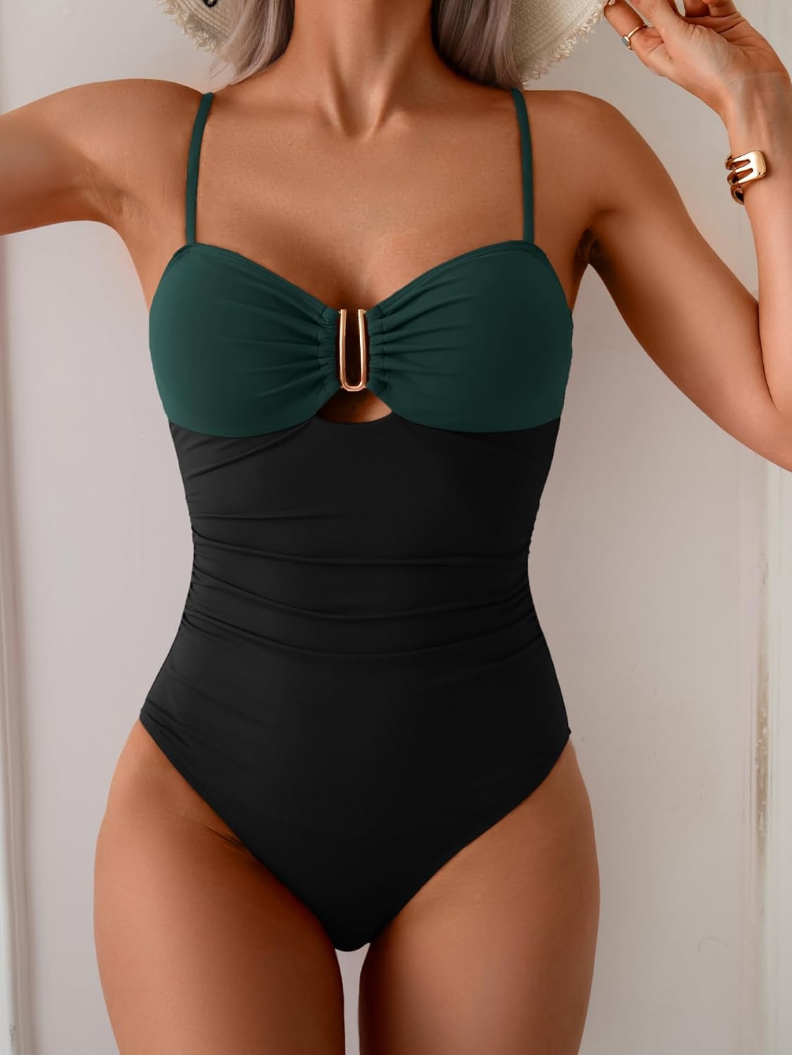 Eomenie One Piece Swimsuit for Women Tummy Control Ruched Bathing Suit Cutout U Wire Swim Suits