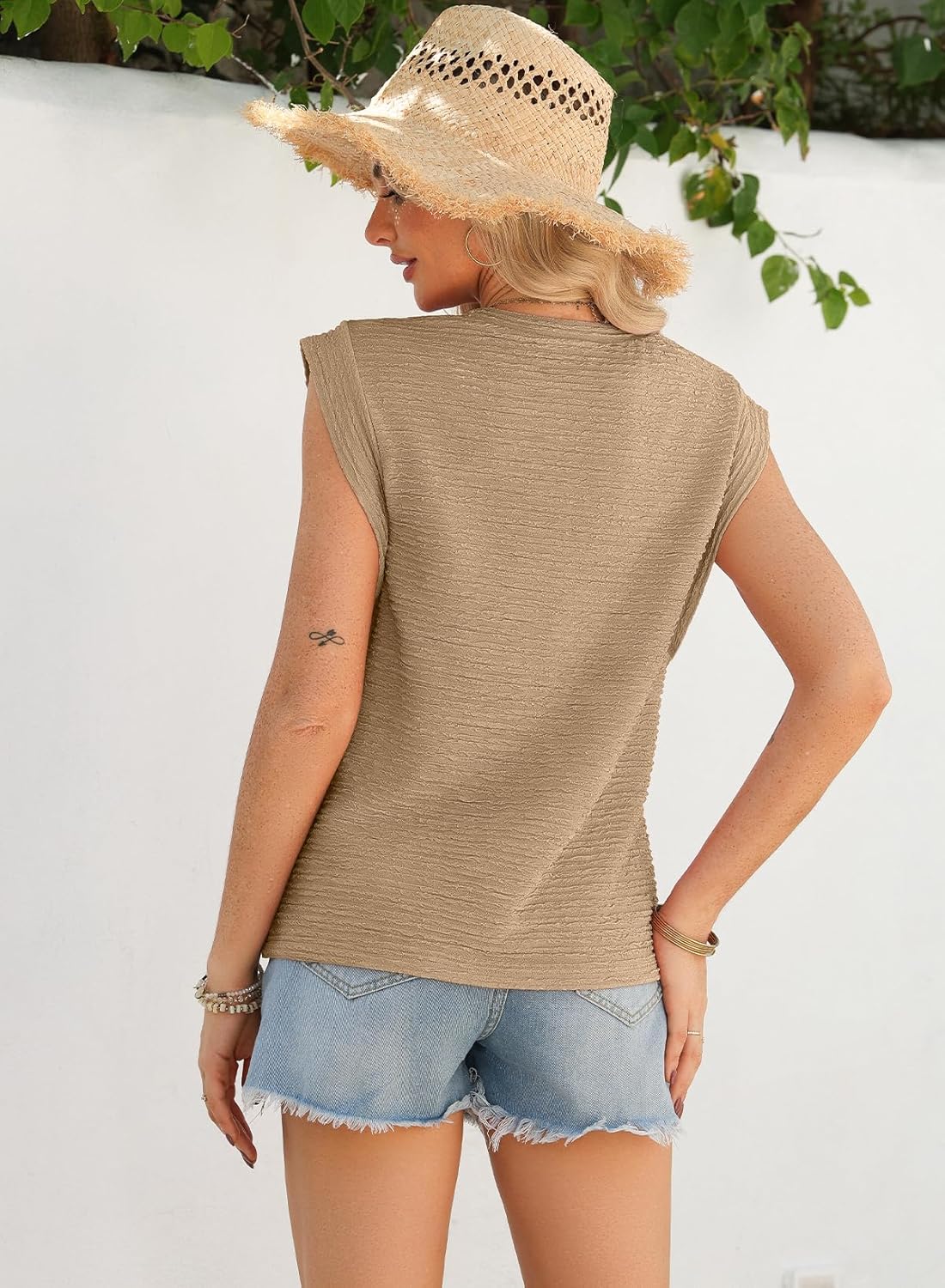 EVALESS Womens Cap Short Sleeve Textured Tops Summer Casual Crewneck Solid Basic T Shirts
