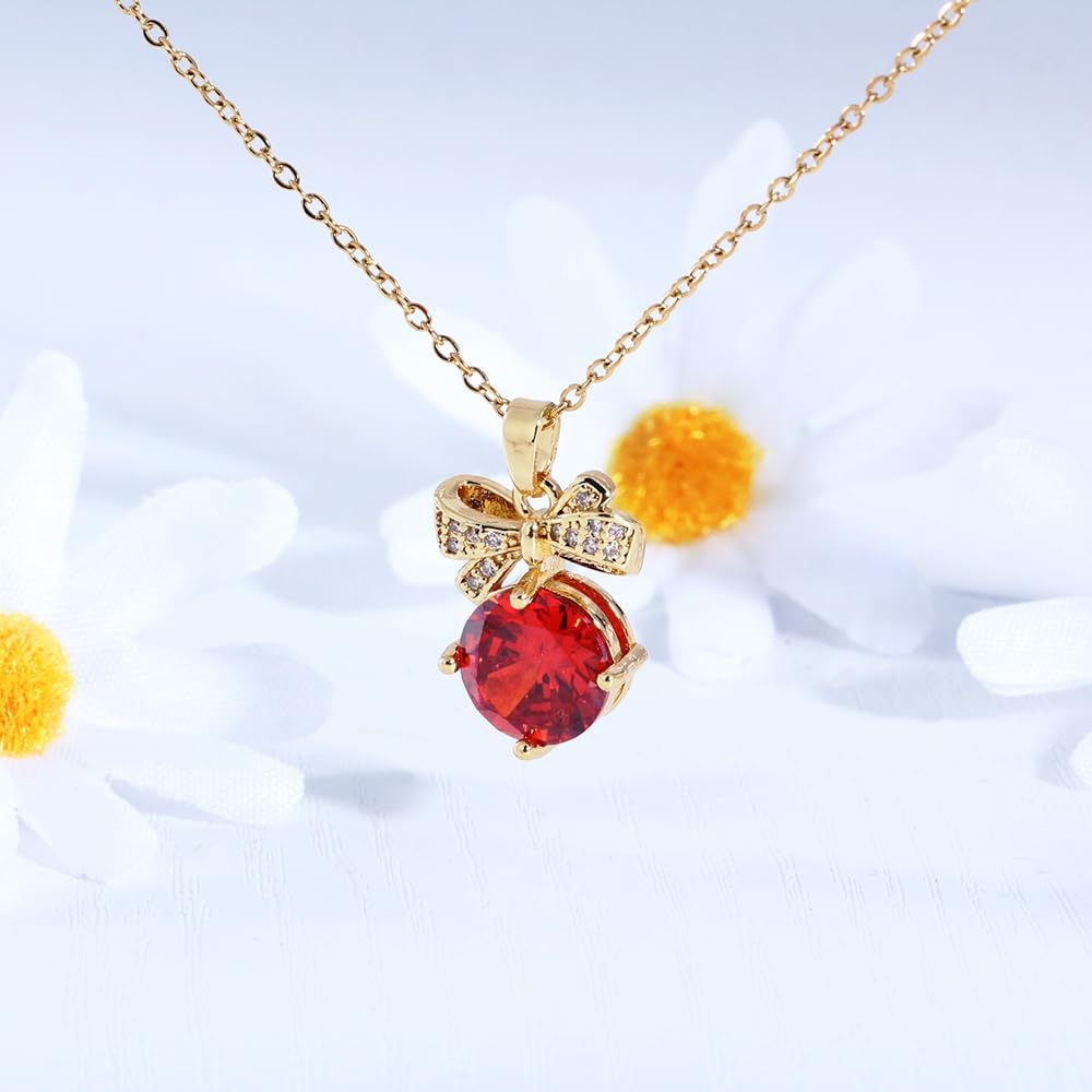 Fashion jewelry elegant round red crystal metal pendant necklace, suitable for gift party wedding party wearing