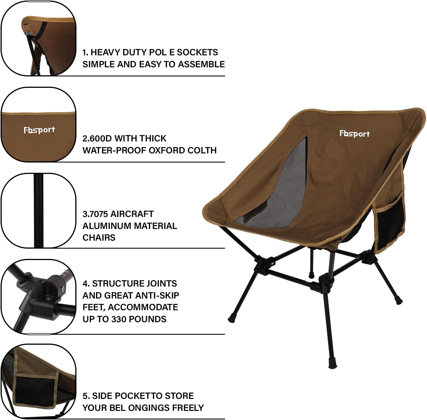 FBSPORT 2 Pack Portable Camping Chairs Lightweight Backpacking Chair Compact & Heavy Duty for Camp, Backpack, Hiking, Beach, Picnic, with Carry Bag