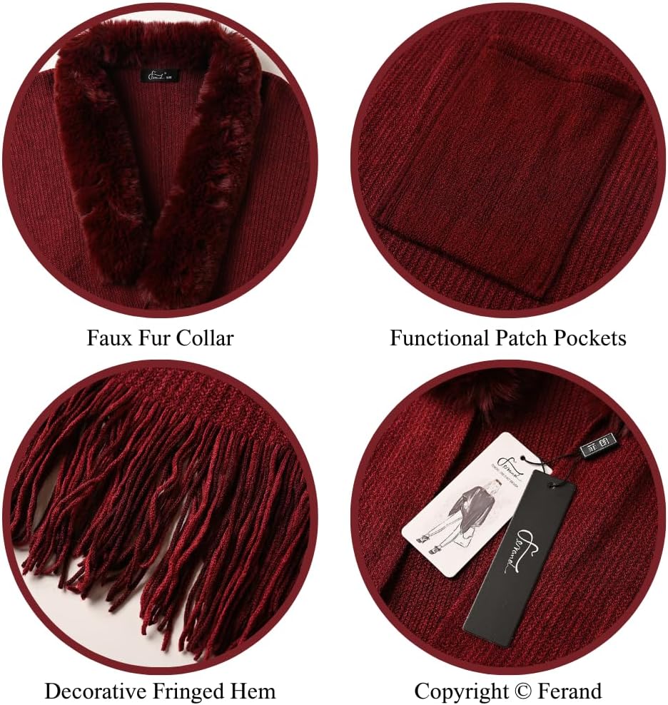 Ferand Women’s Shawl Wraps with Pockets Open Front Fringe Poncho Cozy Knit Lightweight Cardigan Sweater