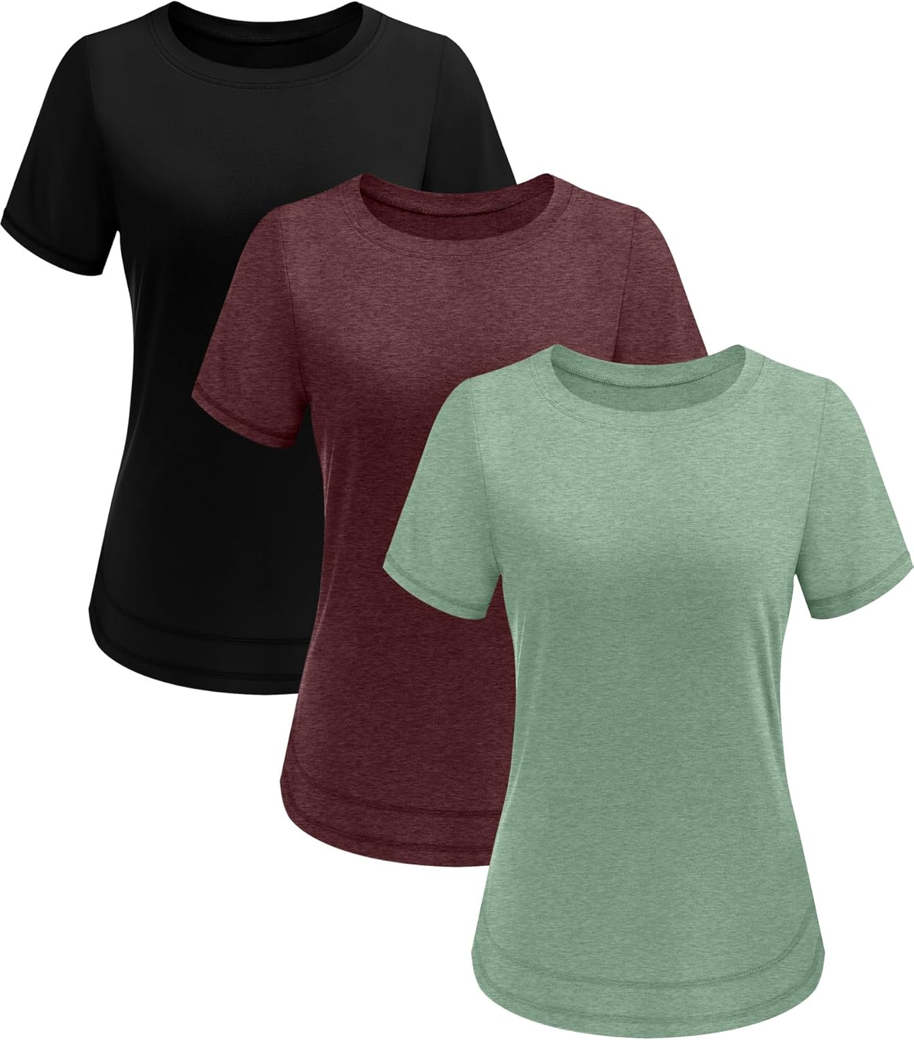 Ficerd 3 Pack Women’s Short Sleeve T-Shirts, Loose Fit Crew Neck Tunic Tops Casual Solid Basic Tee Shirts Curved Hem Blouses