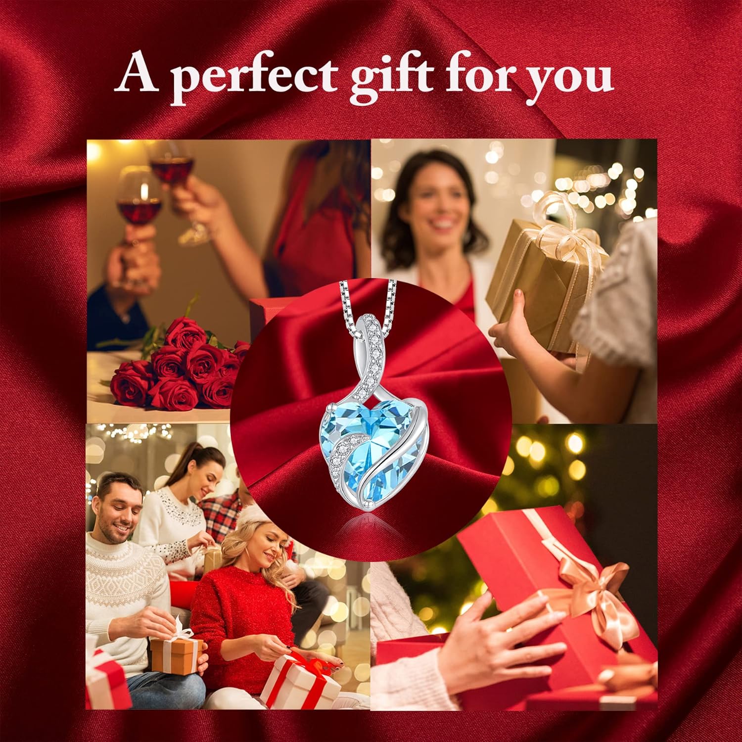 FJ Infinity Birthstone Necklace 925 Sterling Silver Love Heart Pendant Jewelry Gifts for Women